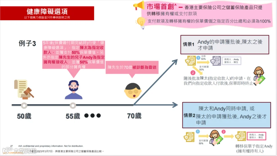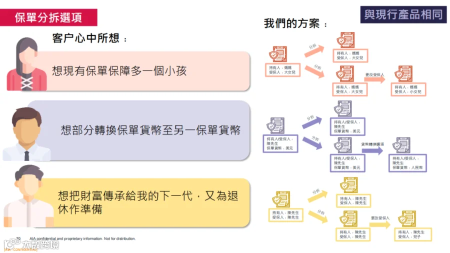如图所示,另外环宇盈活还有一个特殊的功能,就是允许保单暂管人将保单拆分为二,并指定额外第二持有人成为分拆保单的新第二持有人。