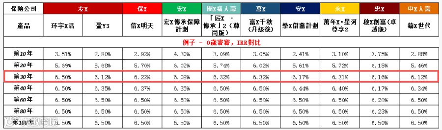 第30年:IRR直接触顶 6.5%,并维持至终身