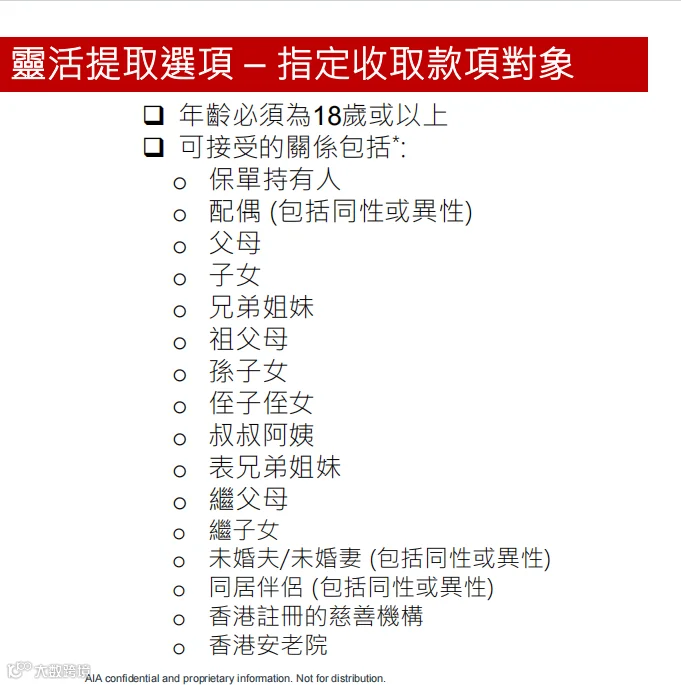 而环宇盈活允许你指定其他人作为收款人——可以是子女、配偶,也可以是兄弟姐妹、甚至慈善机构。