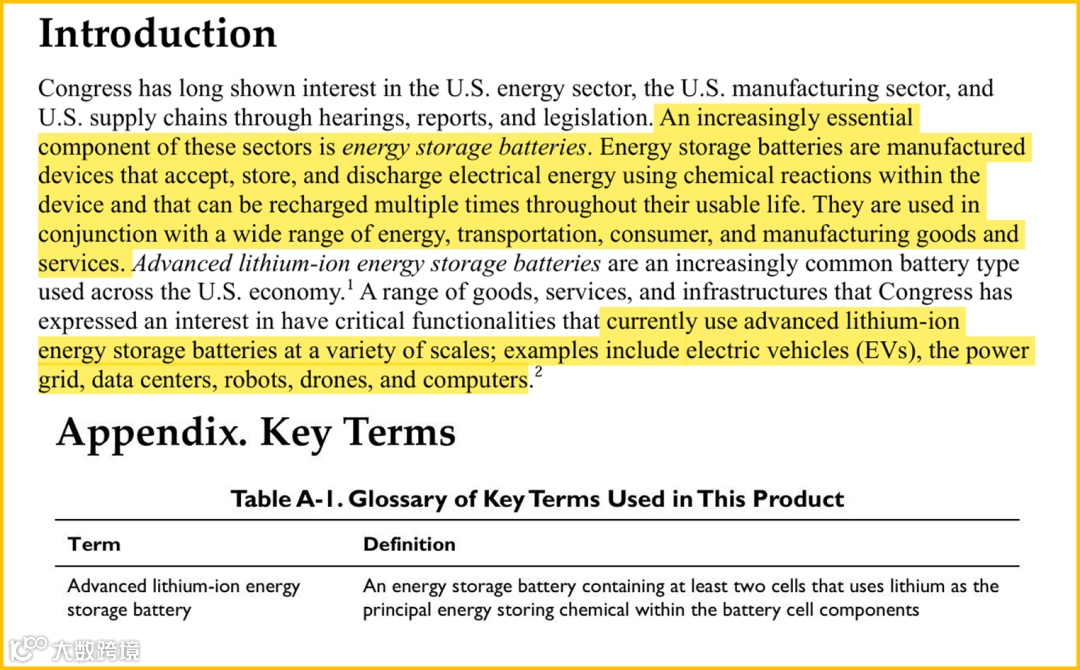 最后部分的建议是:国会可考虑增加、减少或维持某些旨在保护国内电池制造供应链的贸易壁垒。比如拜登政府时期依据《1974年贸易法》第301条的广泛法定权限,对原产于中国的进口电池及电池零部件征收关税。特朗普政府时期对包括电池在内的更广泛商品实施了更高关税。此类政策可能使需求转向国内电池及零部件生产商而非进口来源,从而刺激国内电池制造供应链的额外投资。