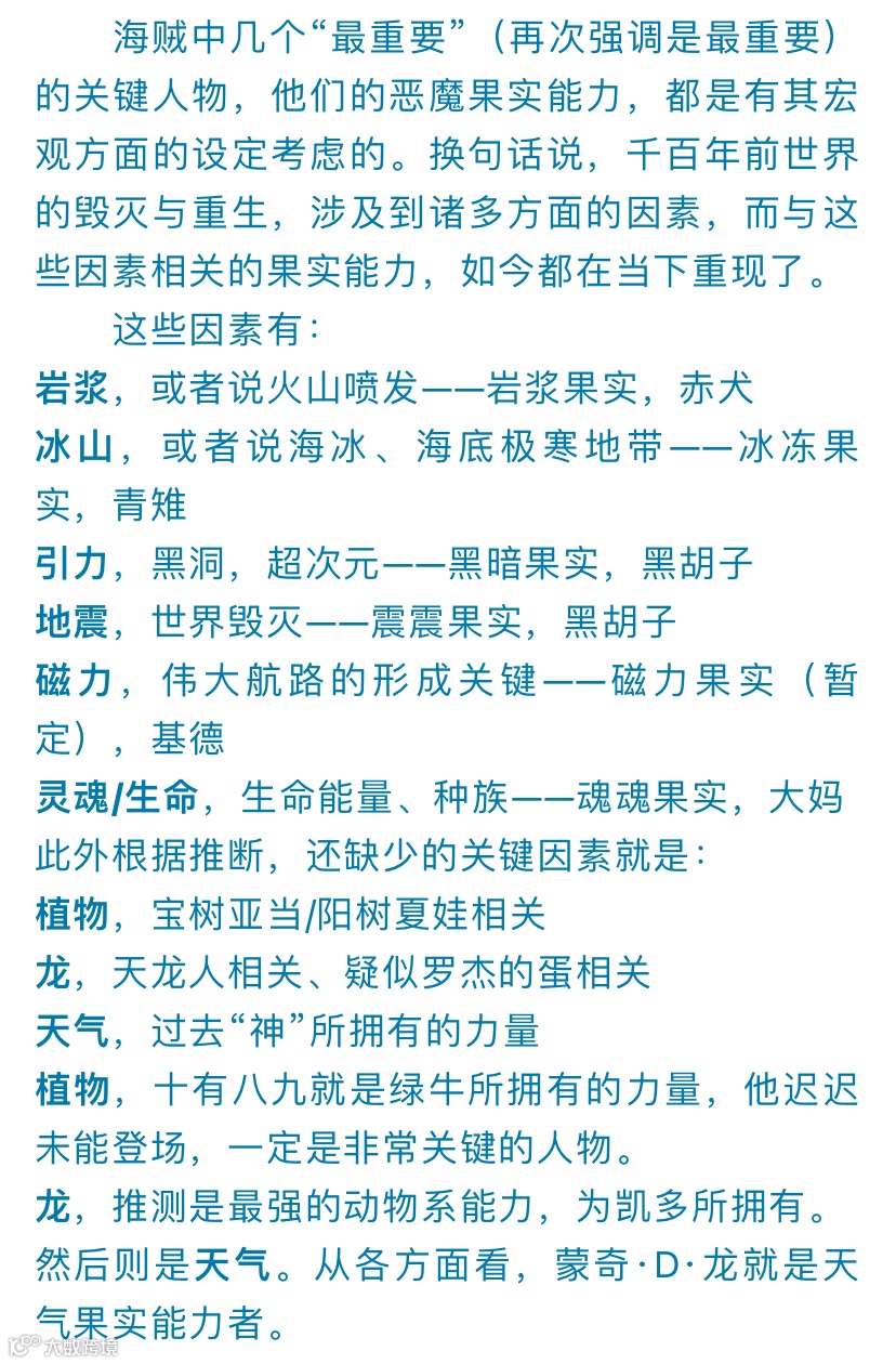 阳阳玛的早期读者应该知道我的一个重要观点:故事中几位最核心的角色的果实能力,有着宏观上的考量。