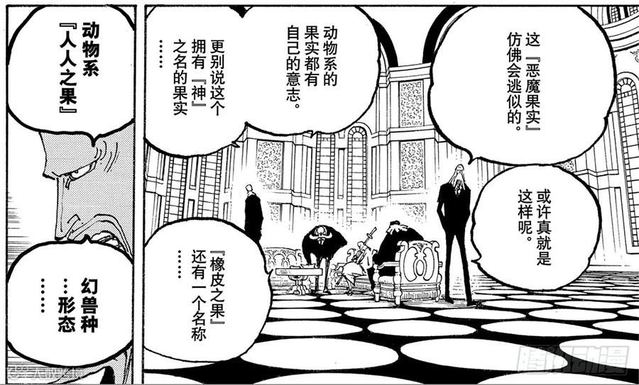 “「橡橡果实」还有一个名称……动物系「人人果实」幻兽种「尼卡」形态。”