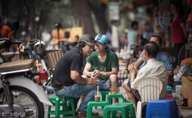 越南人喝咖啡并不像法国人那样,讲究的是精致,追求的是浪漫,他们更多的是一种随性,喜欢坐在小板凳,用小号“炕桌”,面向马路,就像吃地摊一样,一杯咖啡、茶或果汁,三两朋友同事能聊过几小时。