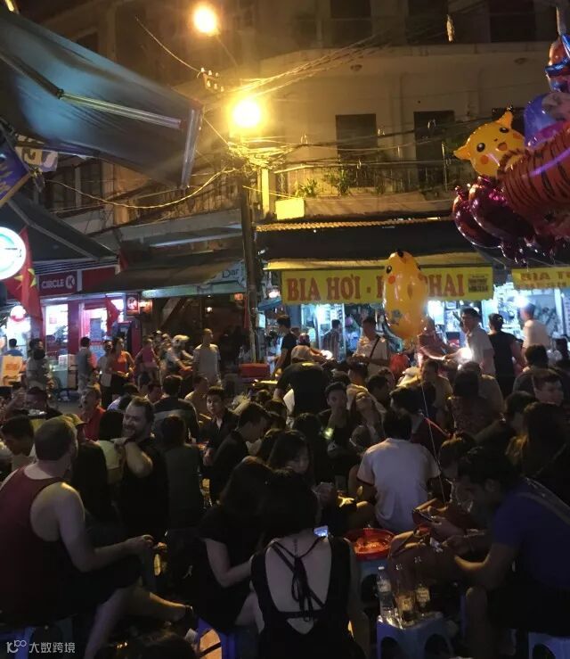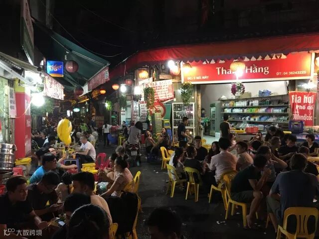 三十六行街,被称为河内的“小义乌”,之所以叫“三十六行街”,源于旧时这里一街一行当的售卖着各式商品,且逐渐形成了区域化的商品聚集地。夜晚的三十六街灯火通明,遍地开花的酒吧,窄窄的人行道全部坐满了人。这里聚集很多欧美背包客,即便是一个人到此旅行,也可以凭借一支酒互相打开话匣子,非常热闹。