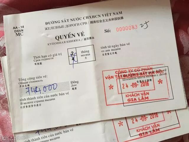 嘉林火车站售票窗口的工作人员是会讲中文的,购买火车票时也可以使用人民币,凭护照可办理购买,统一只有软铺,票价744,000VND,内部和国内的火车差不多,刚好可以睡着回南宁。