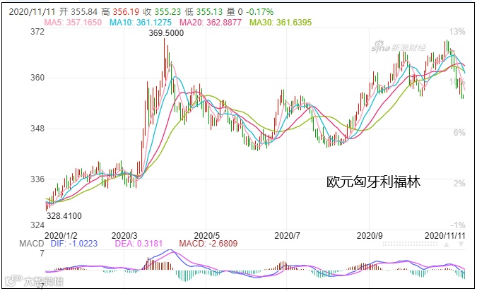 同样进入经济寒冬的还有中欧国家匈牙利。匈牙利货币福林不断贬值,年内贬值8%左右,成为欧盟最脆弱的货币之一。11月10日,福林对欧元为358.8,今年内最低达369.5。