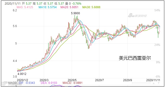 数据显示,雷亚尔对美元一度在10月底时升至5.7790:1,而年初时仅为4.0012:1。巴西央行发布的最新一期《焦点调查》报告显示,分析师认为,到今年底前,巴西雷亚尔与美元的汇率将为5.45比1;到明年底前,汇率将升至5.2比1。