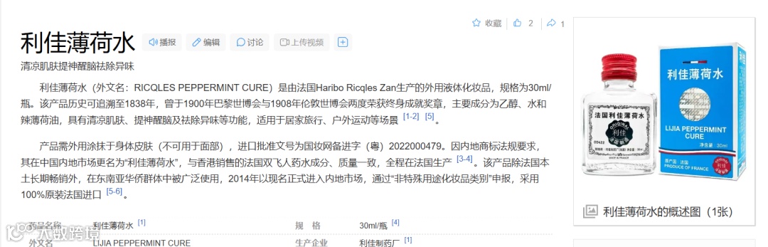 法国利佳以“利佳薄荷水” 名称进入大陆市场,沿用双飞人经典蓝白红包装设计,并在宣传中强调 “源自法国 1838 年” 的历史背景。
