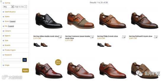 这几个网站的品牌囊括Laoke,Barker,Grenson,Jeffery West、Herring,Cheaney,Church's,Trickers,AlfredSargent,Crocket & Jones,Sanders,G&G,Edward Green等,对于一般玩家来说够用了。