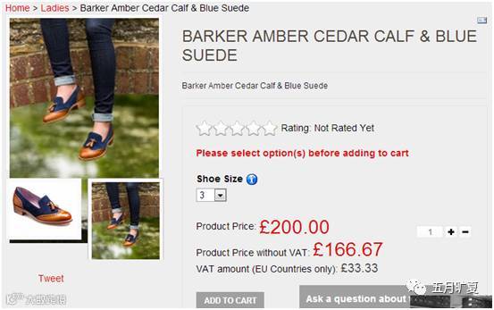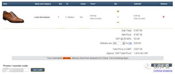 购物车页面,已经扣掉了英国20%的消费税: