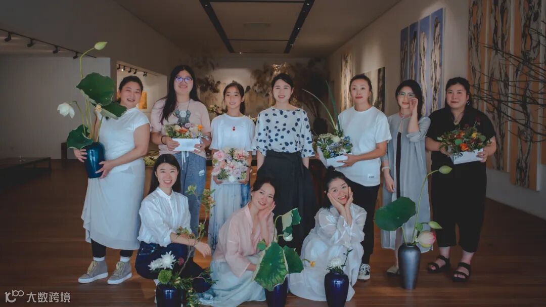 六、介绍花艺理论知识,老师教授【东方盘花设计】,学员亲手操作,老师和助教指导,老师总结与合影
