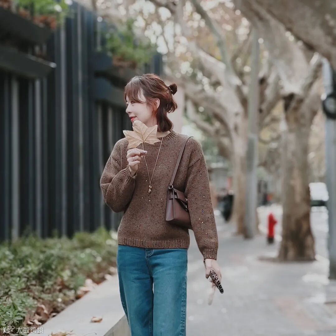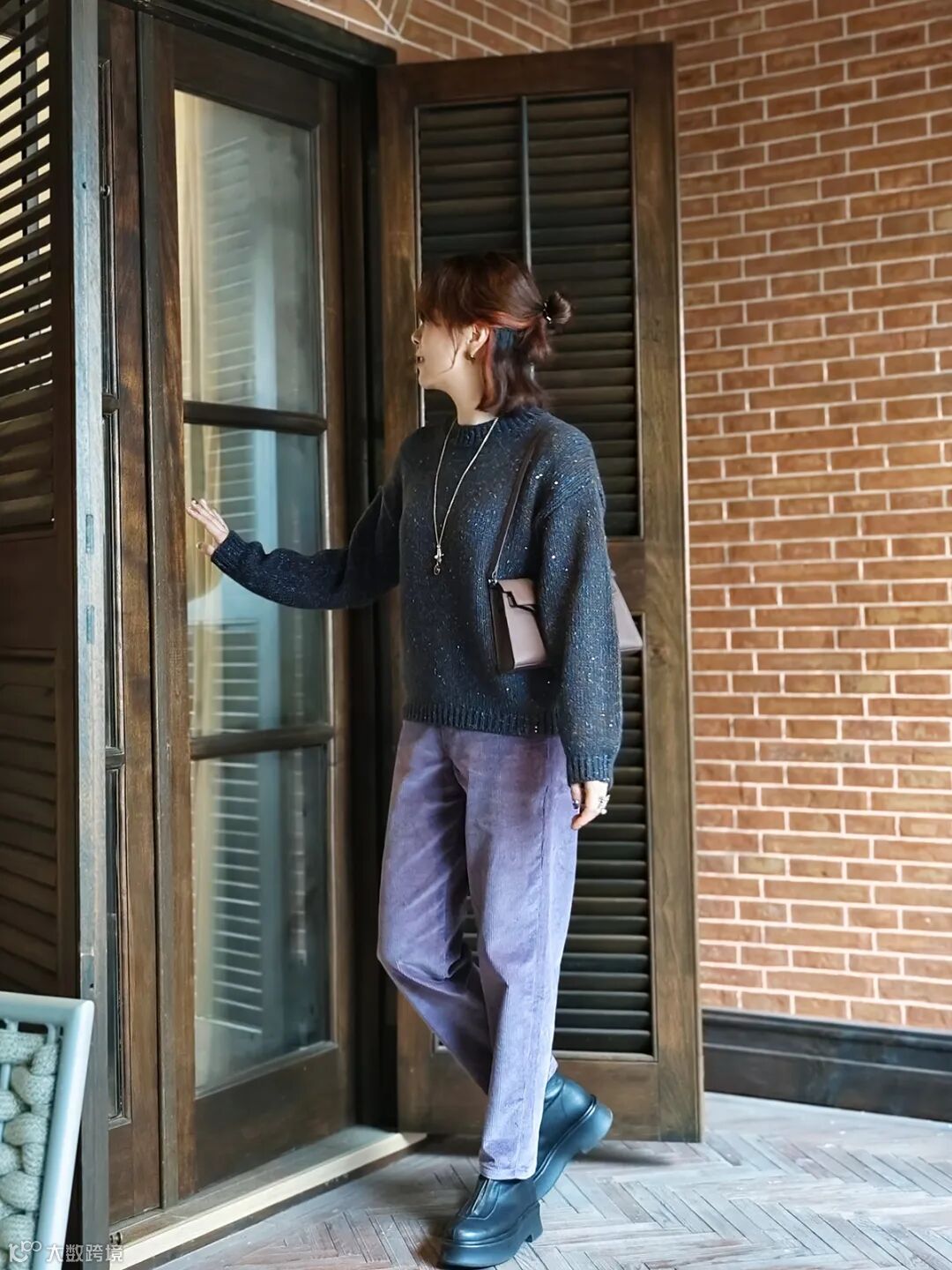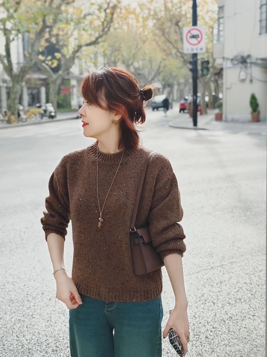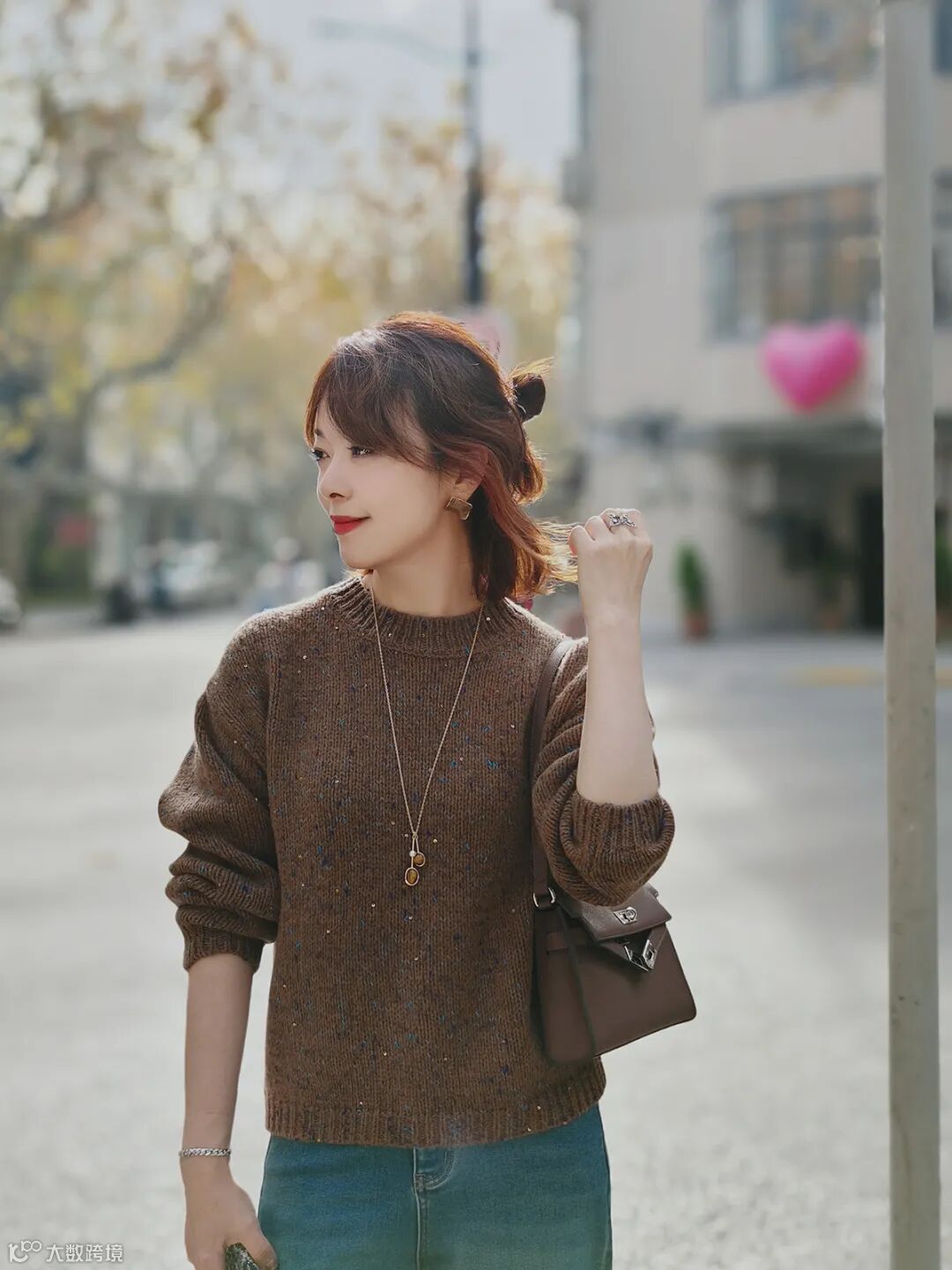 要穿出惬意舒适的感觉,就选择那种刚刚好的随身款,不宽松也不紧绷,给你的穿搭留有余地的那种毛衣,搭配出来给人一种随性惬意舒适的感觉。