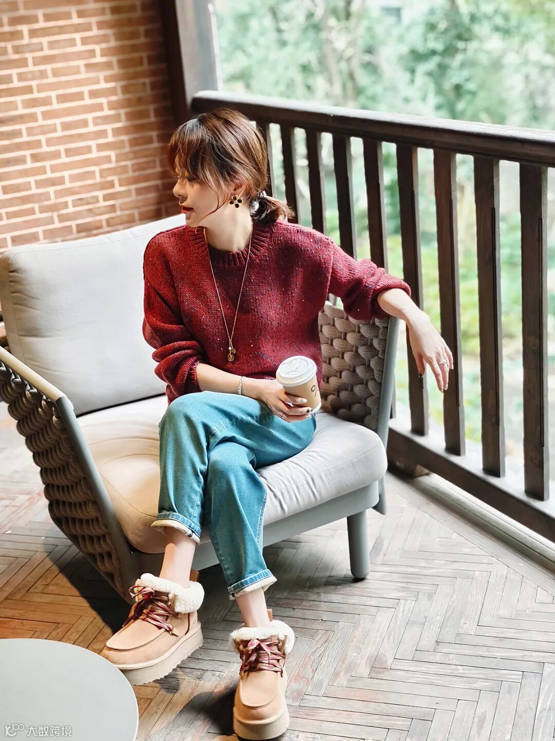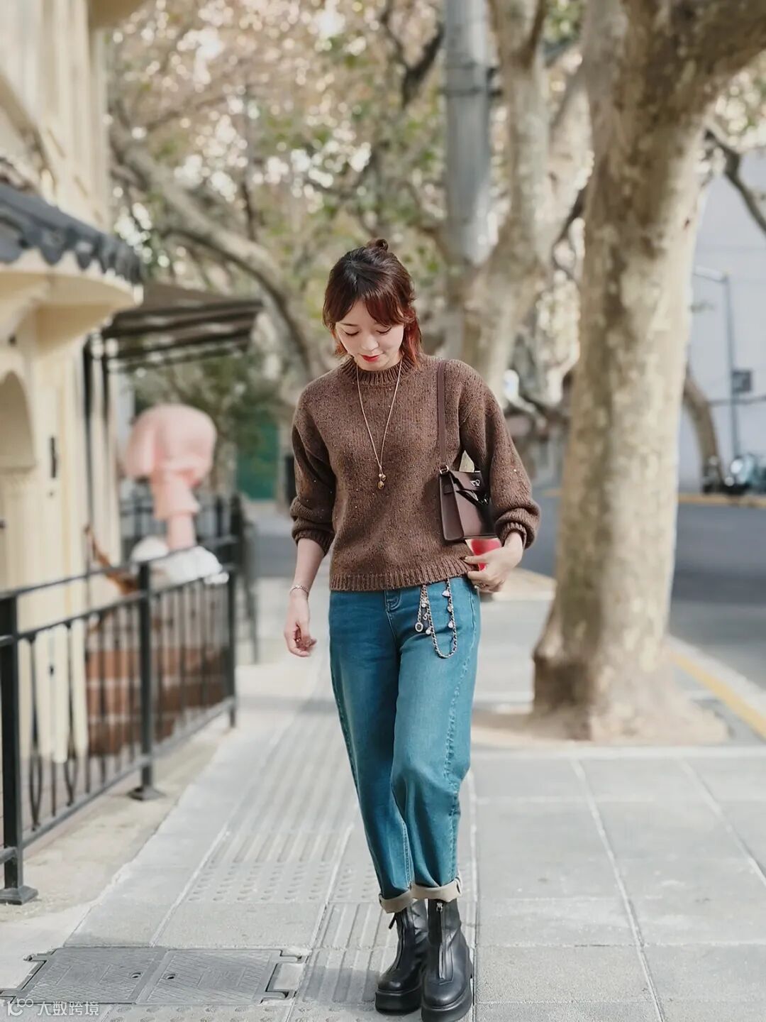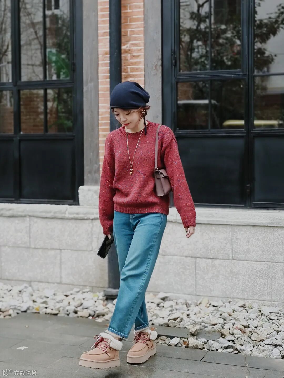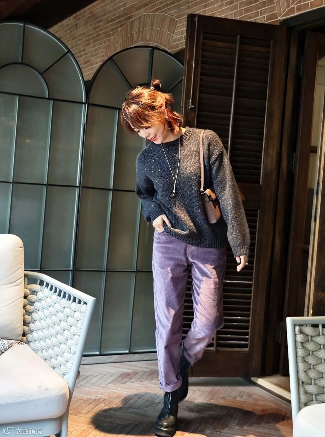 要穿出惬意舒适的感觉,就选择那种刚刚好的随身款,不宽松也不紧绷,给你的穿搭留有余地的那种毛衣,搭配出来给人一种随性惬意舒适的感觉。