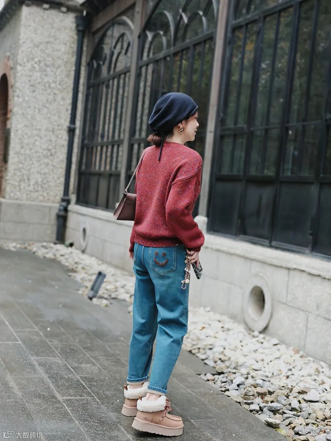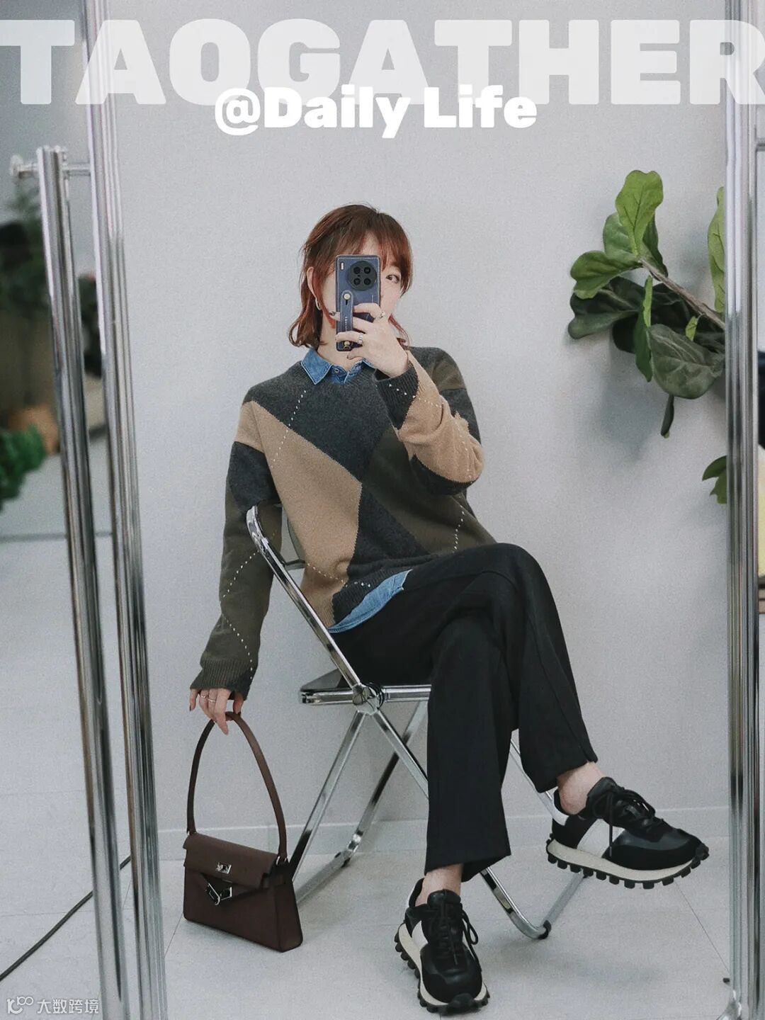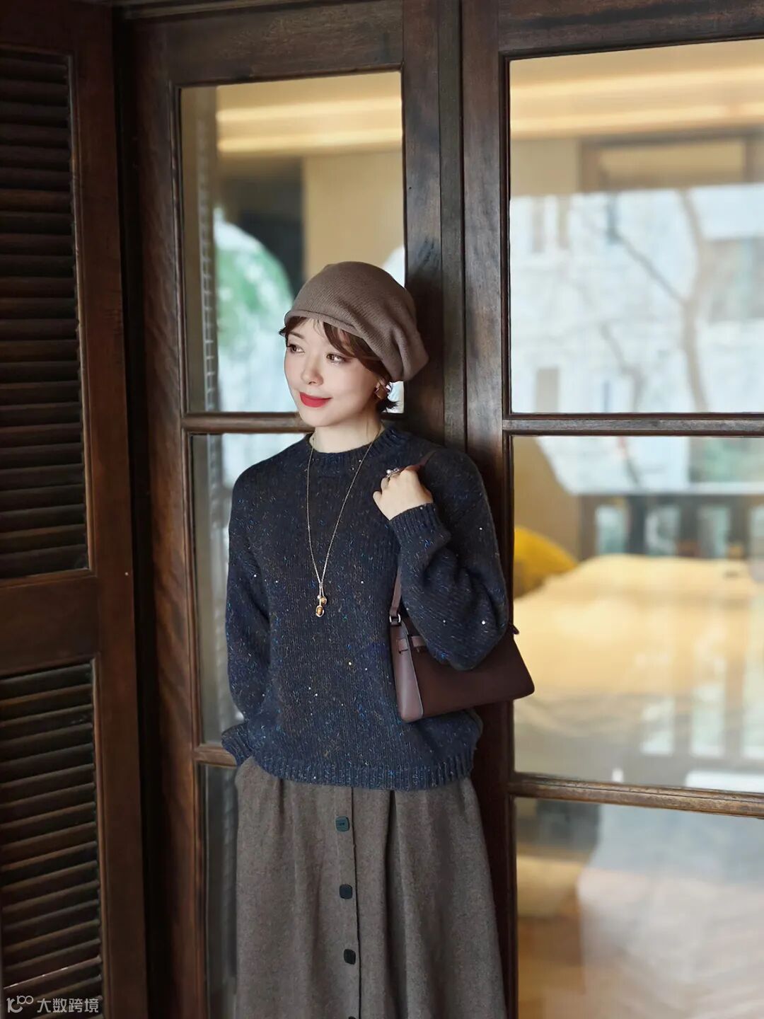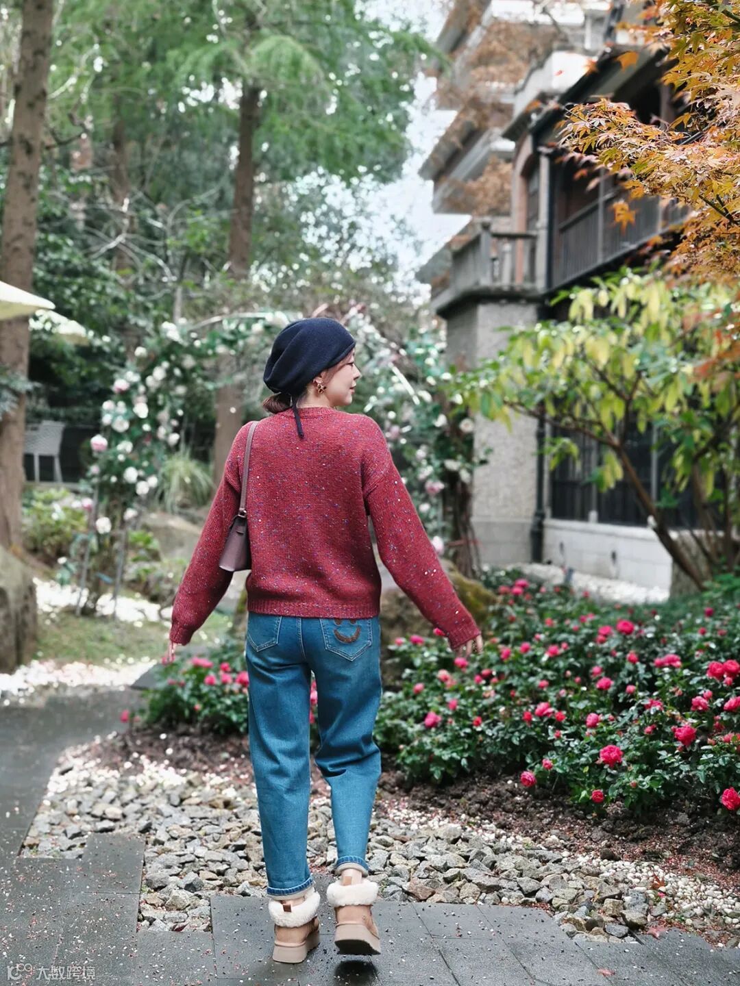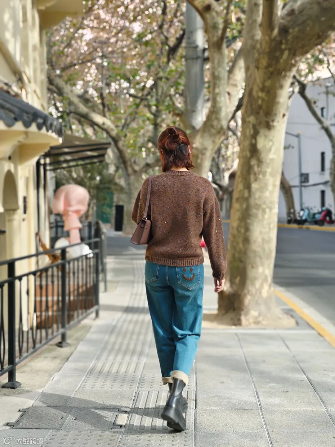 要穿出惬意舒适的感觉,就选择那种刚刚好的随身款,不宽松也不紧绷,给你的穿搭留有余地的那种毛衣,搭配出来给人一种随性惬意舒适的感觉。