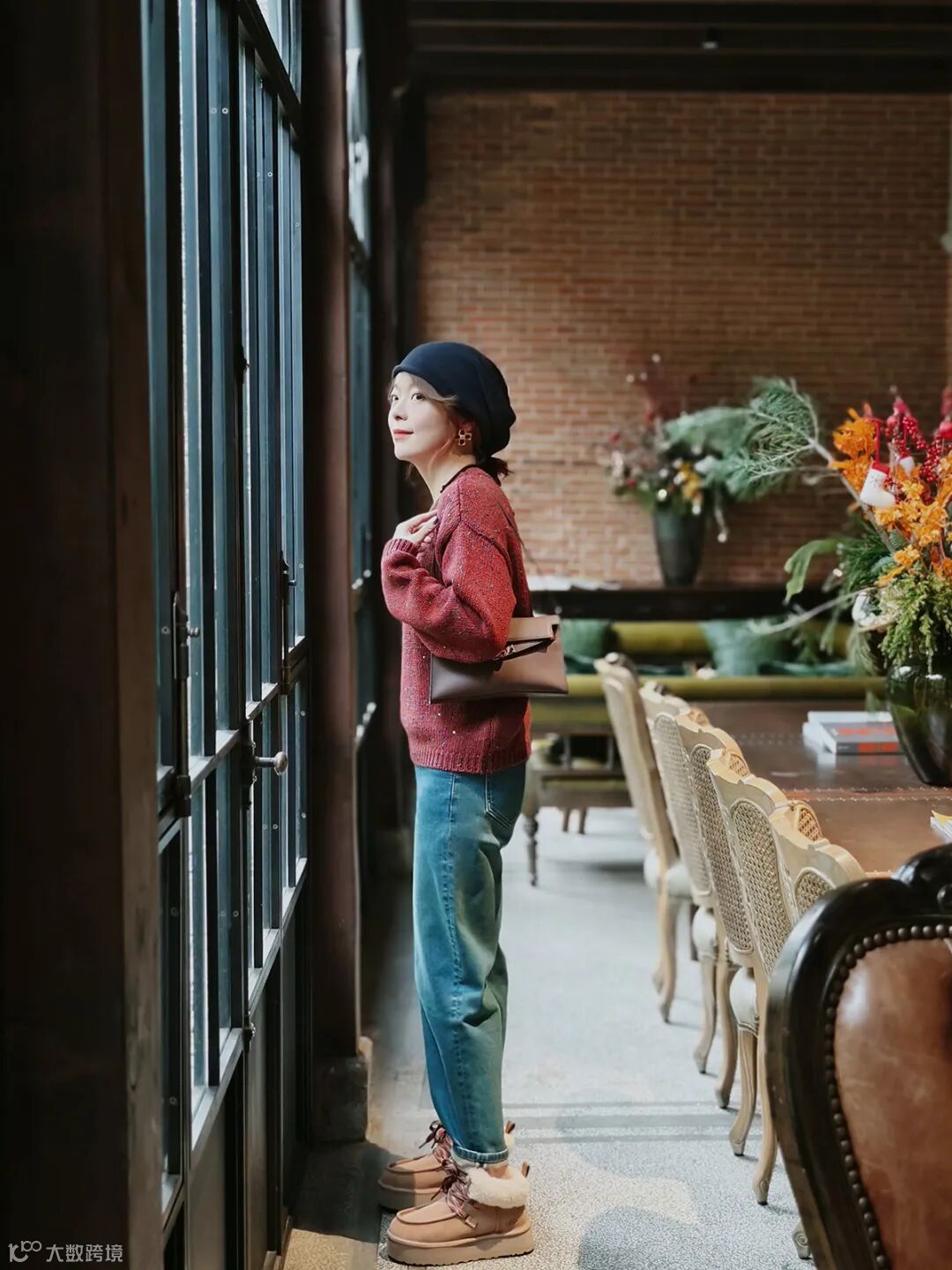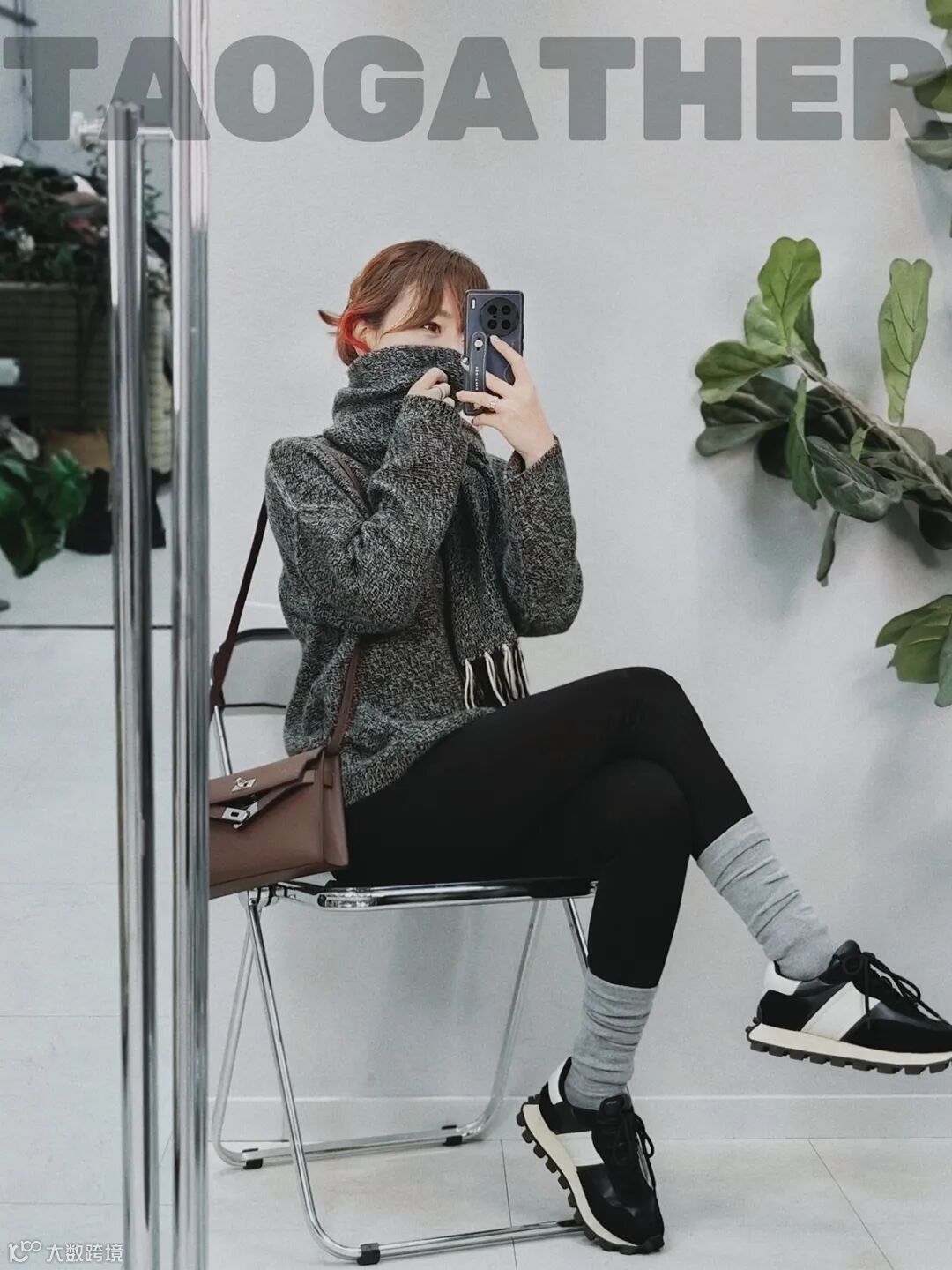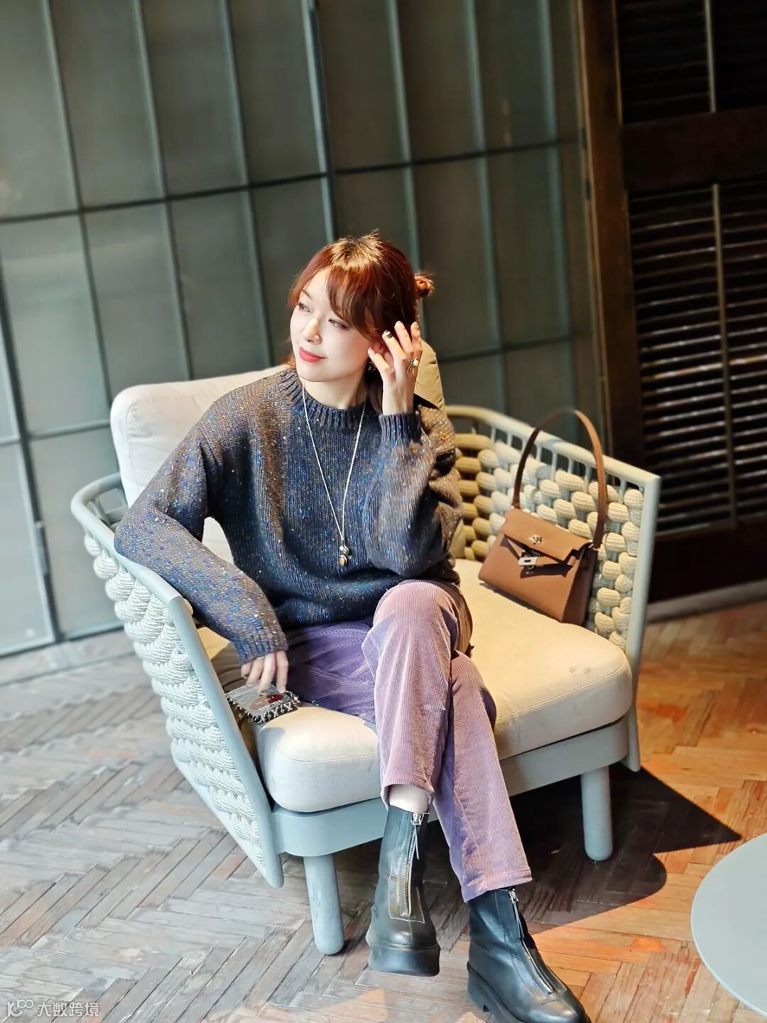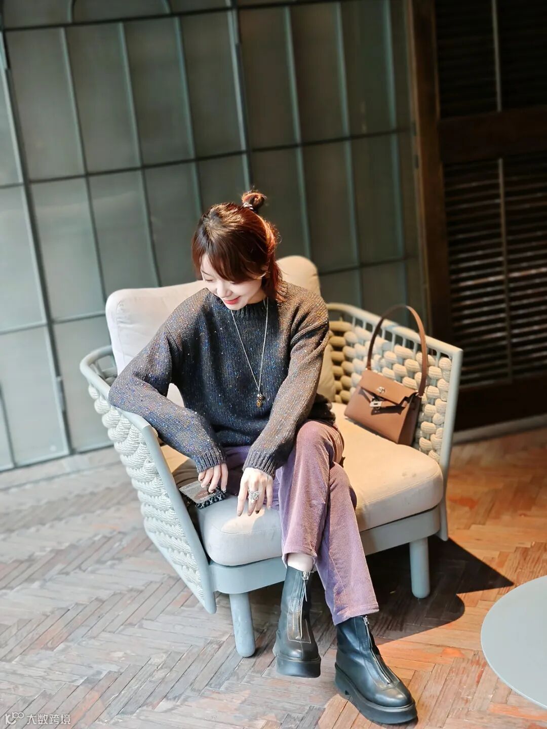 要穿出惬意舒适的感觉,就选择那种刚刚好的随身款,不宽松也不紧绷,给你的穿搭留有余地的那种毛衣,搭配出来给人一种随性惬意舒适的感觉。