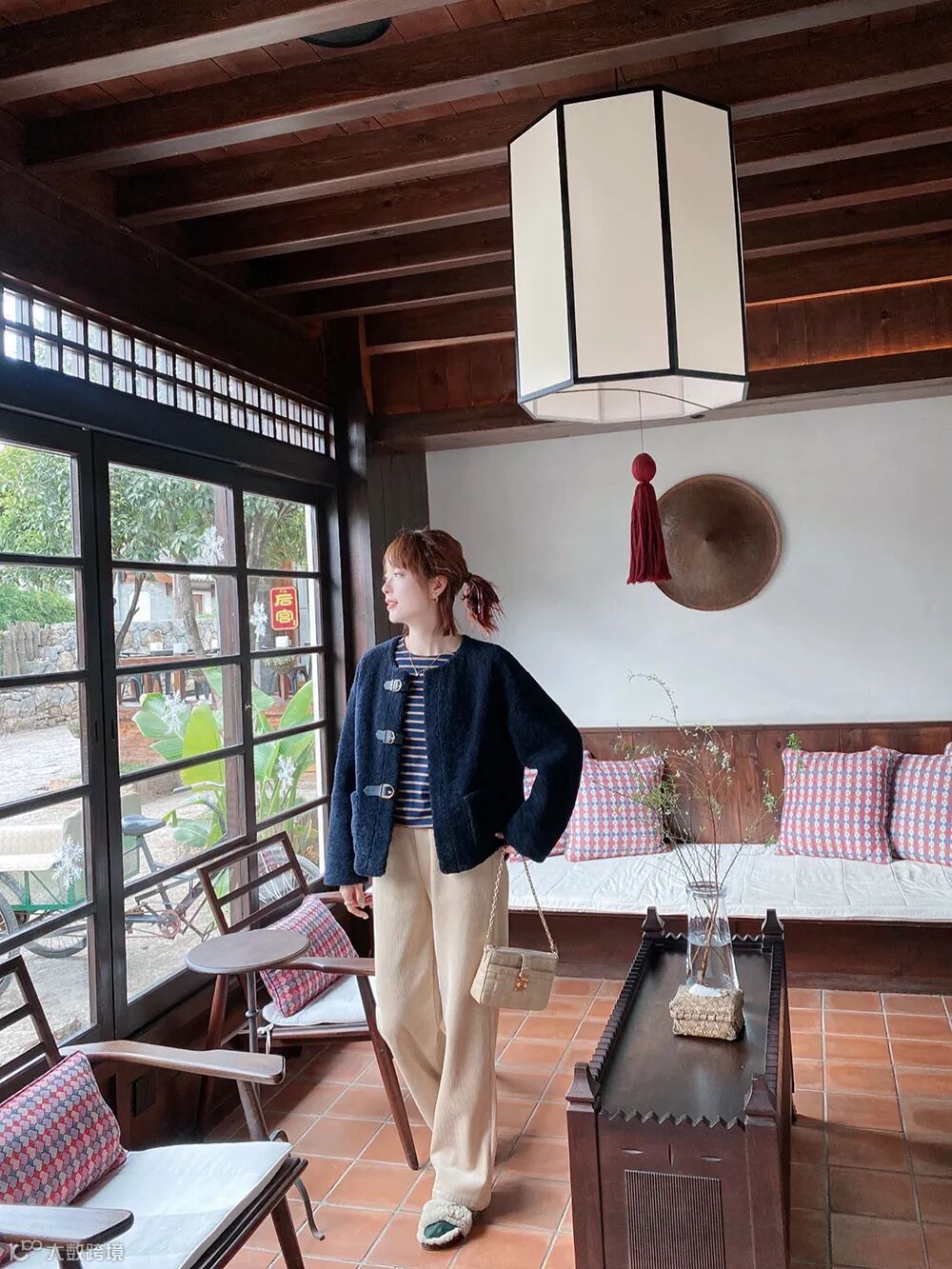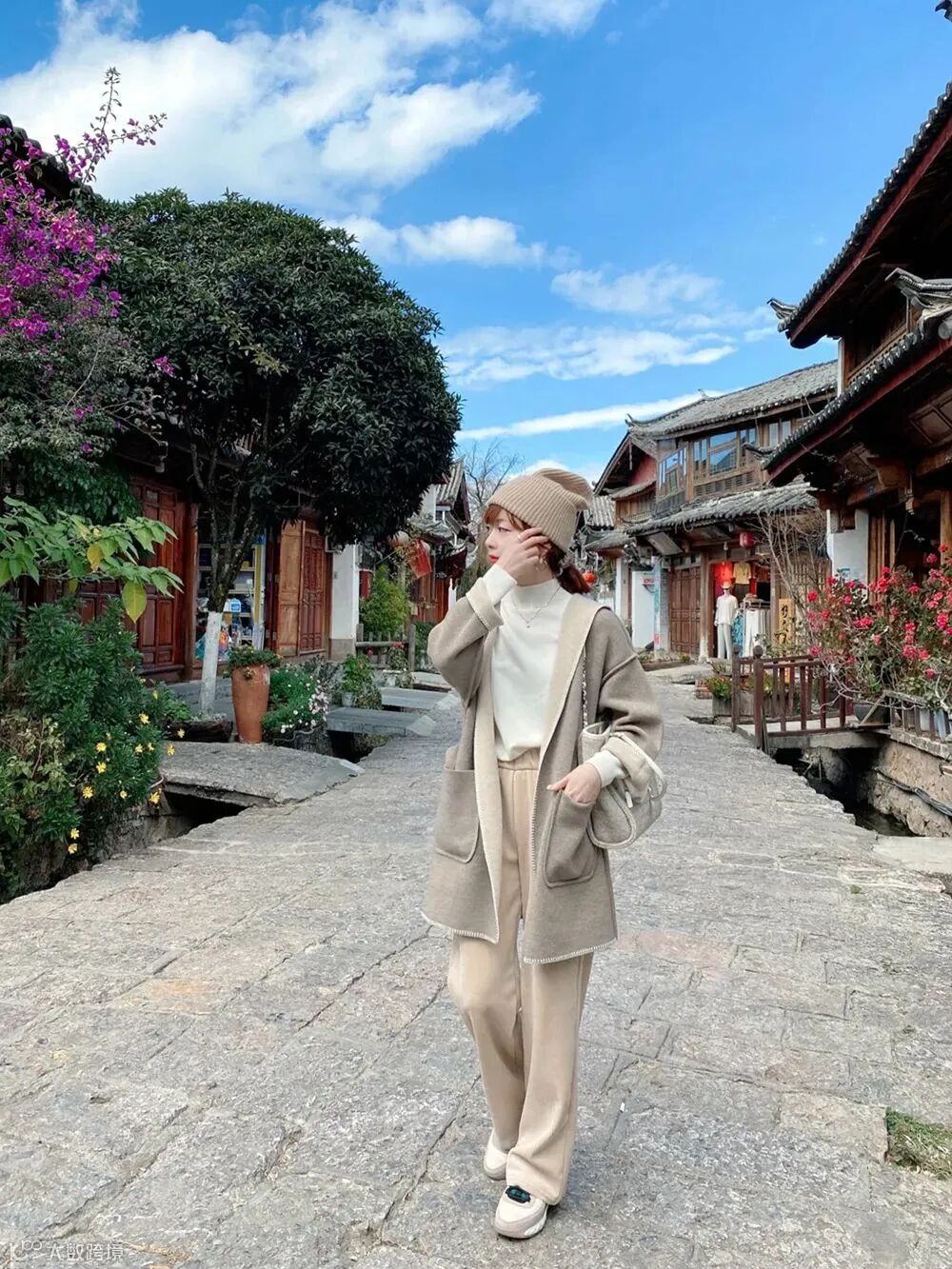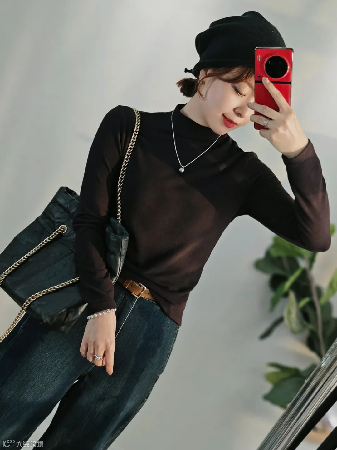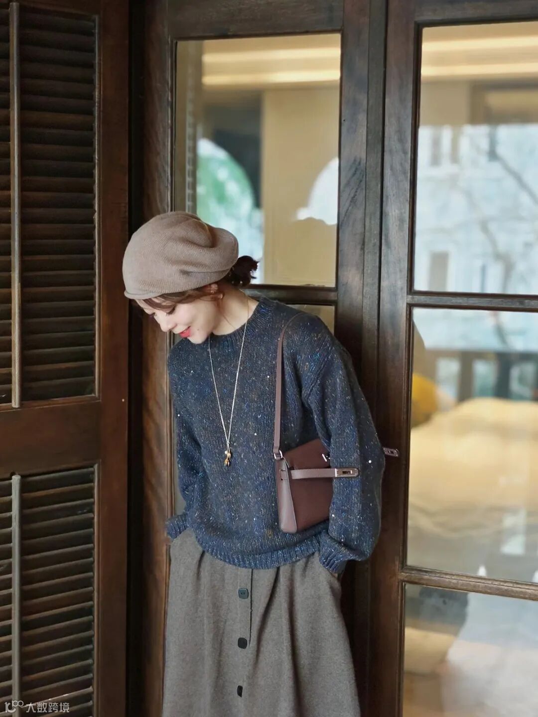 要穿出惬意舒适的感觉,就选择那种刚刚好的随身款,不宽松也不紧绷,给你的穿搭留有余地的那种毛衣,搭配出来给人一种随性惬意舒适的感觉。
