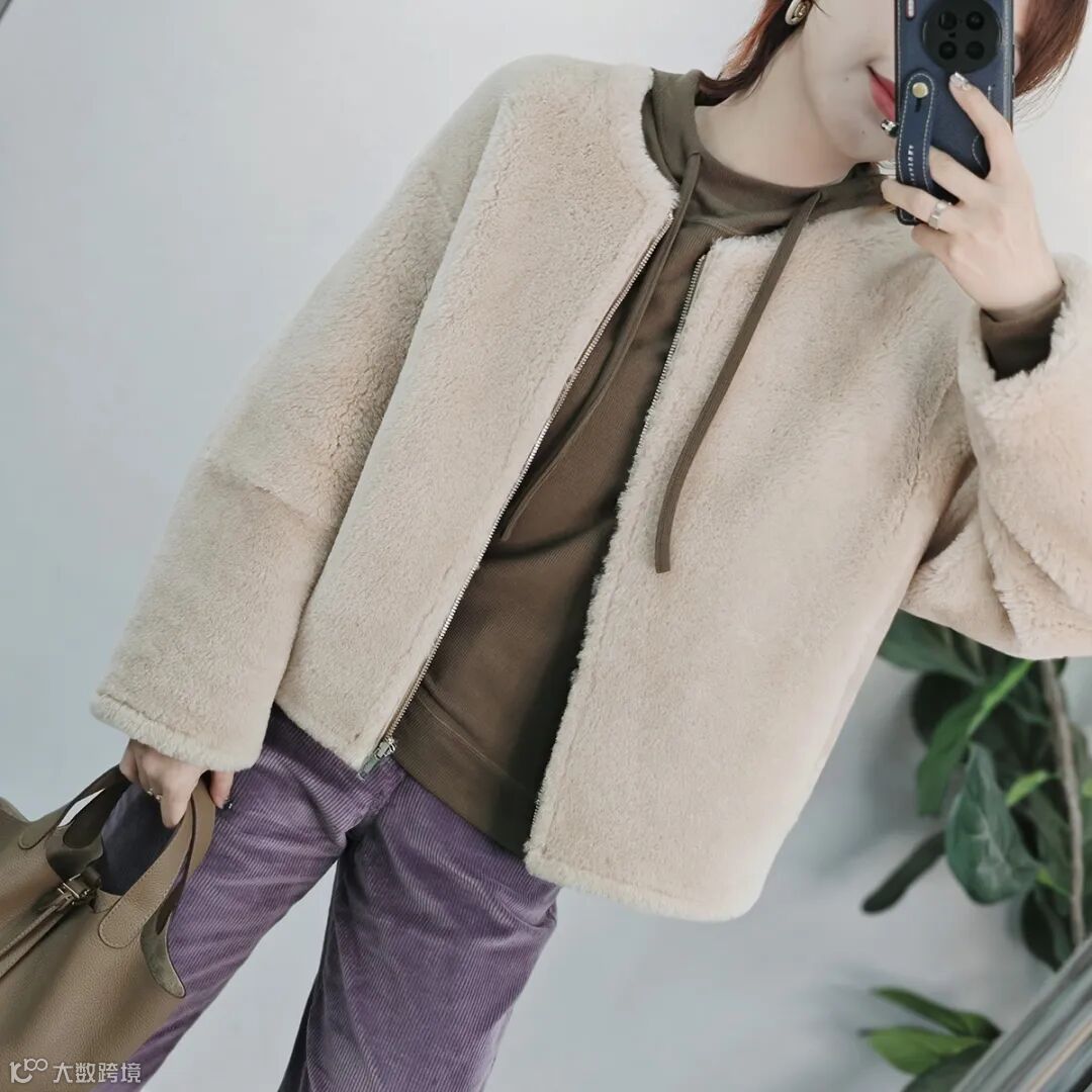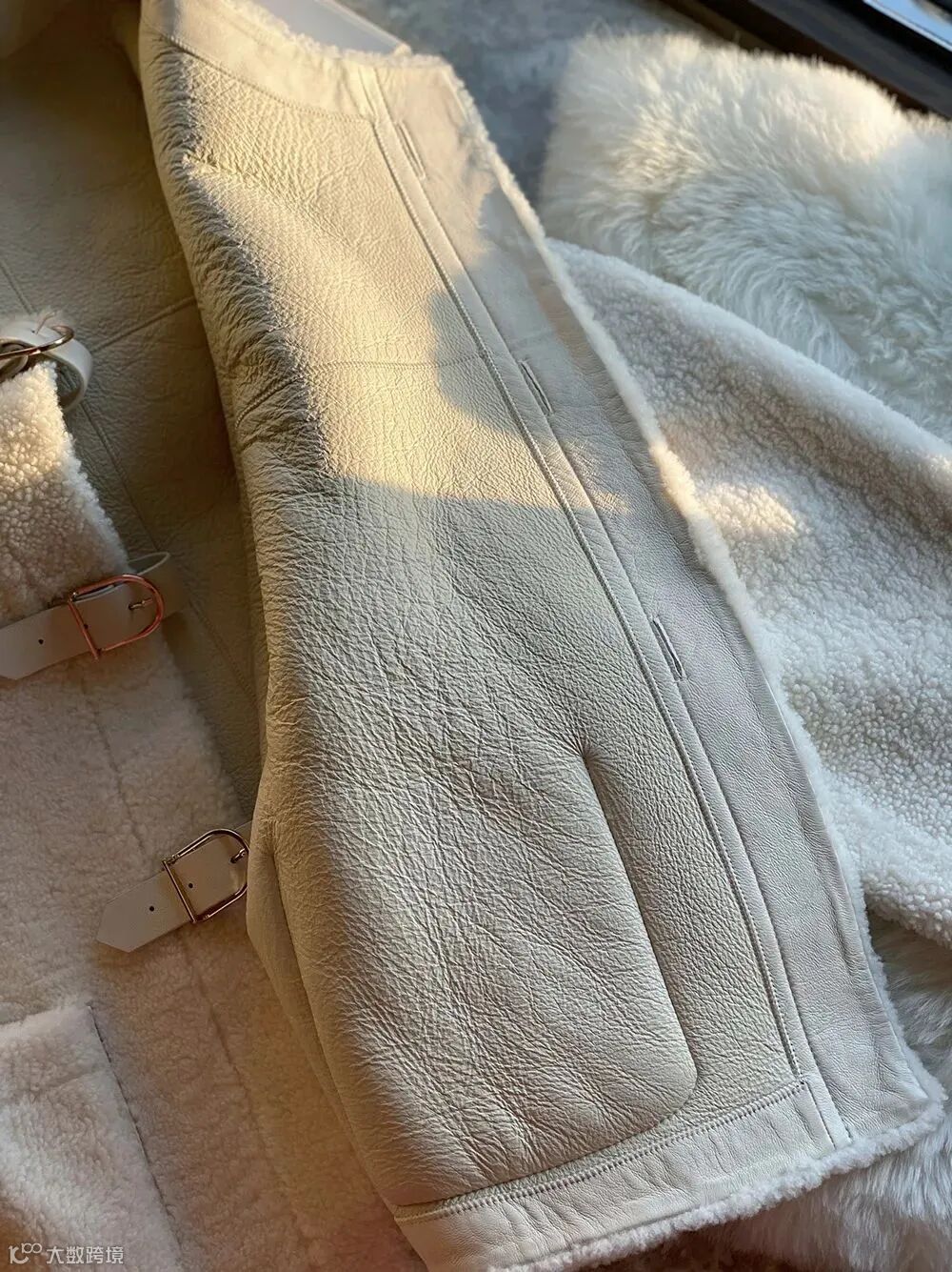 进口羊皮毛一体,面布采用高级羊毛,富有弹性,蓬松度高,细腻的短毛触感,绒绒的,非常保暖。全羊皮内里,由于绵羊皮皮层中油脂含量较高,纤维延伸性优越柔光润泽。