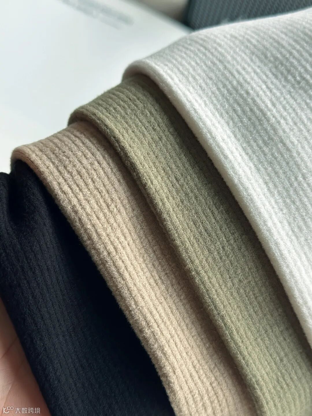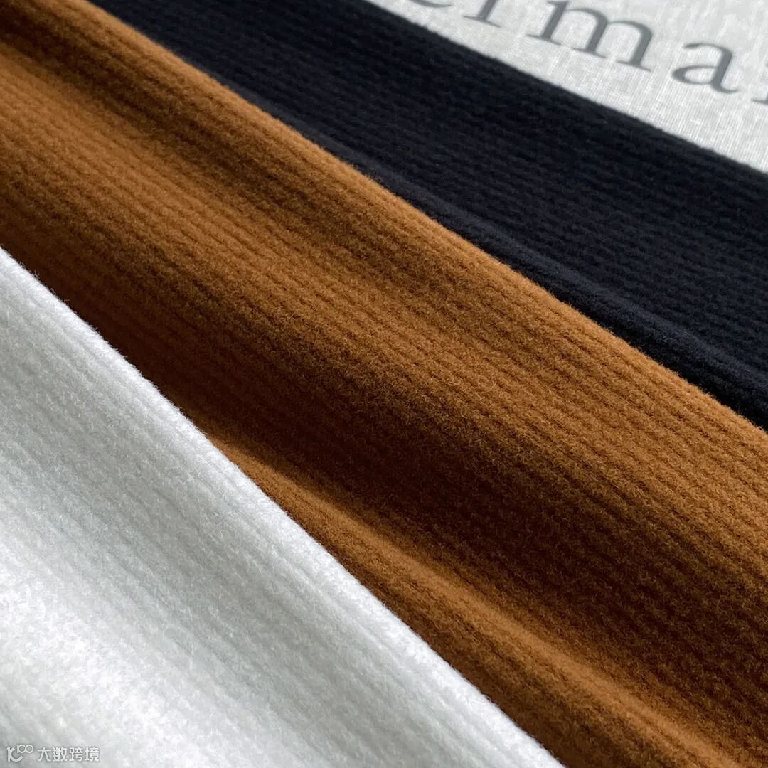 超级柔软的针织坑条,棉花丝绒般的手感,弹力大。薄而不透,柔软透气有垂感,而且非常好打理。