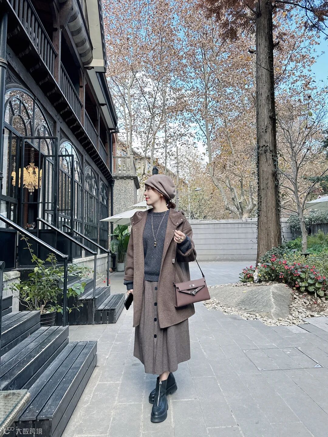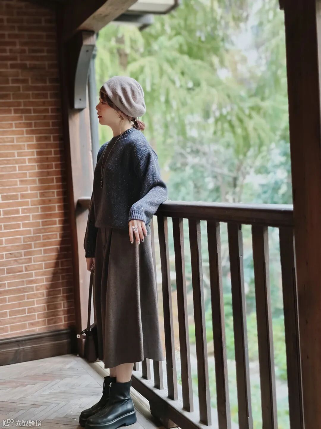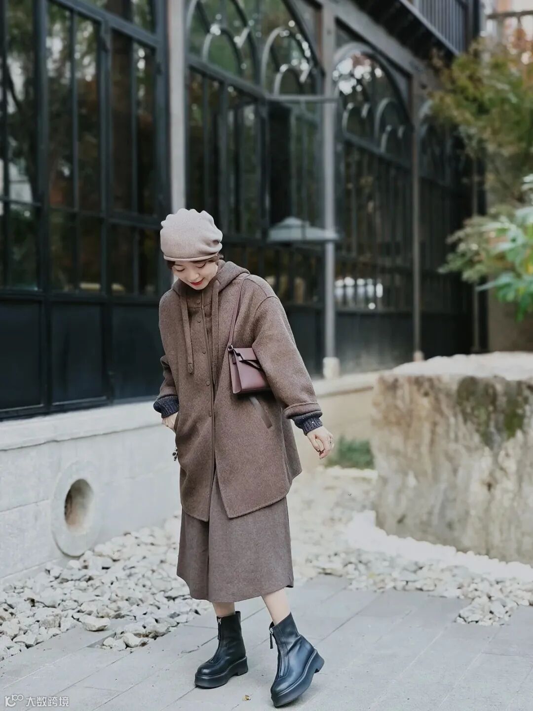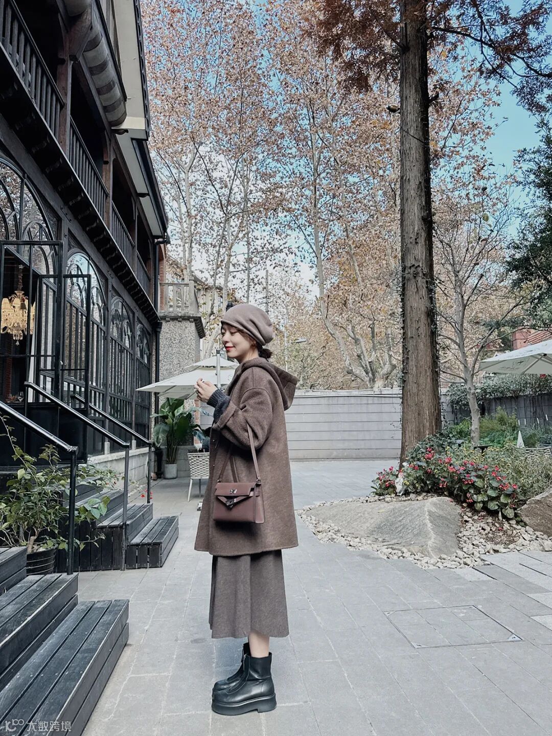 大帽子像披肩一样搭在肩上,显得脸像巴掌一样小。而且它的颜色超级秋冬!无论是梨形、苹果形、纸片人形,都能自带慵懒的神韵美!