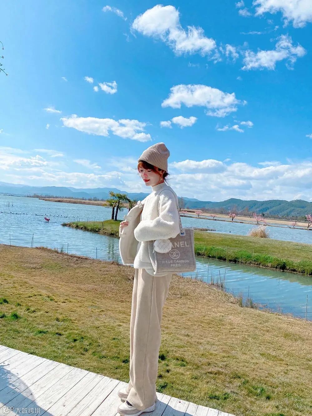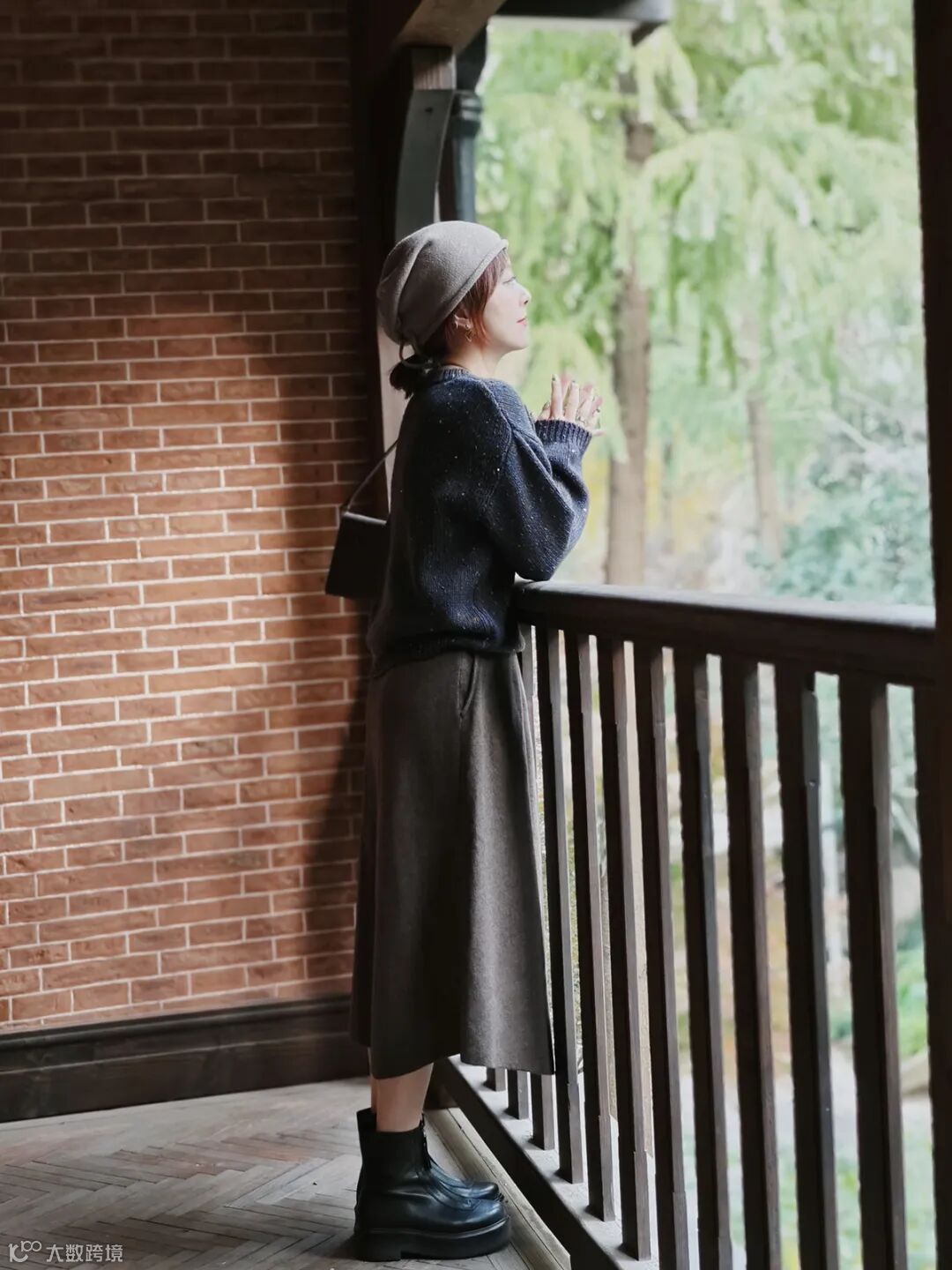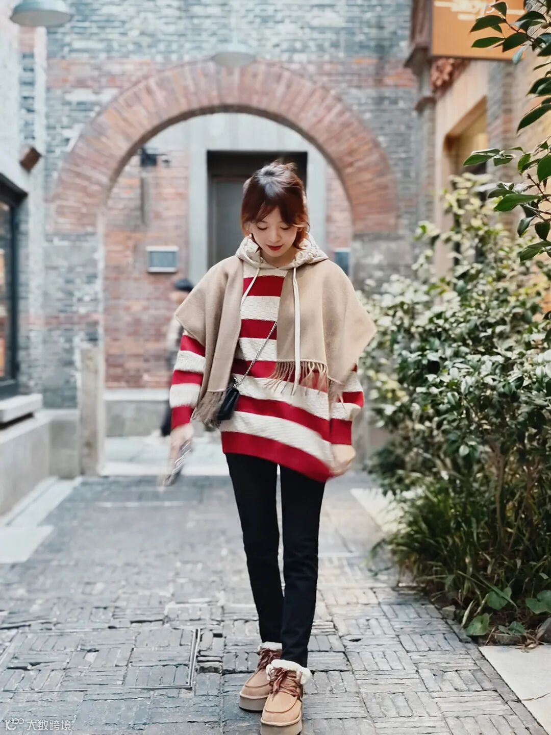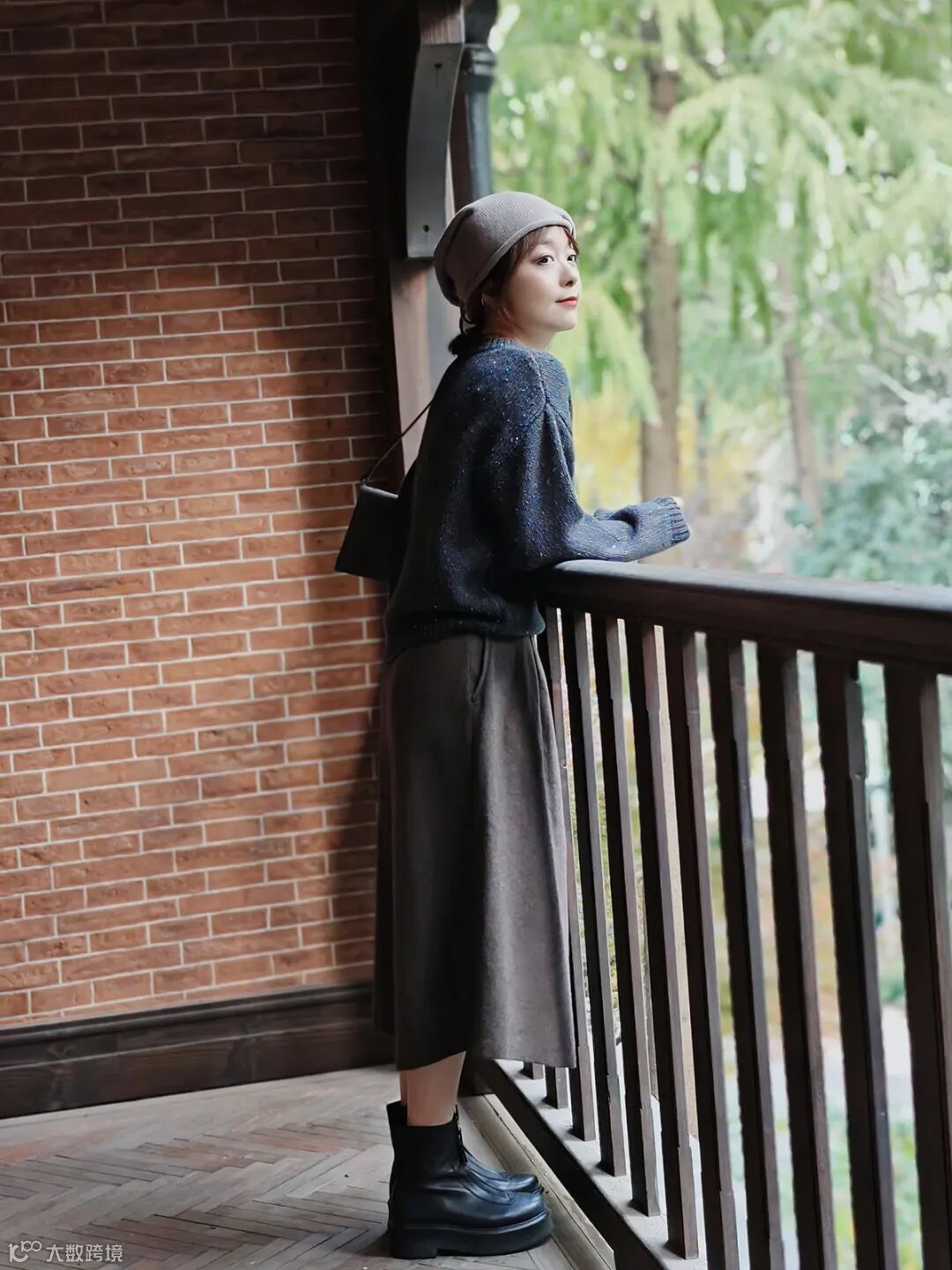 大帽子像披肩一样搭在肩上,显得脸像巴掌一样小。而且它的颜色超级秋冬!无论是梨形、苹果形、纸片人形,都能自带慵懒的神韵美!