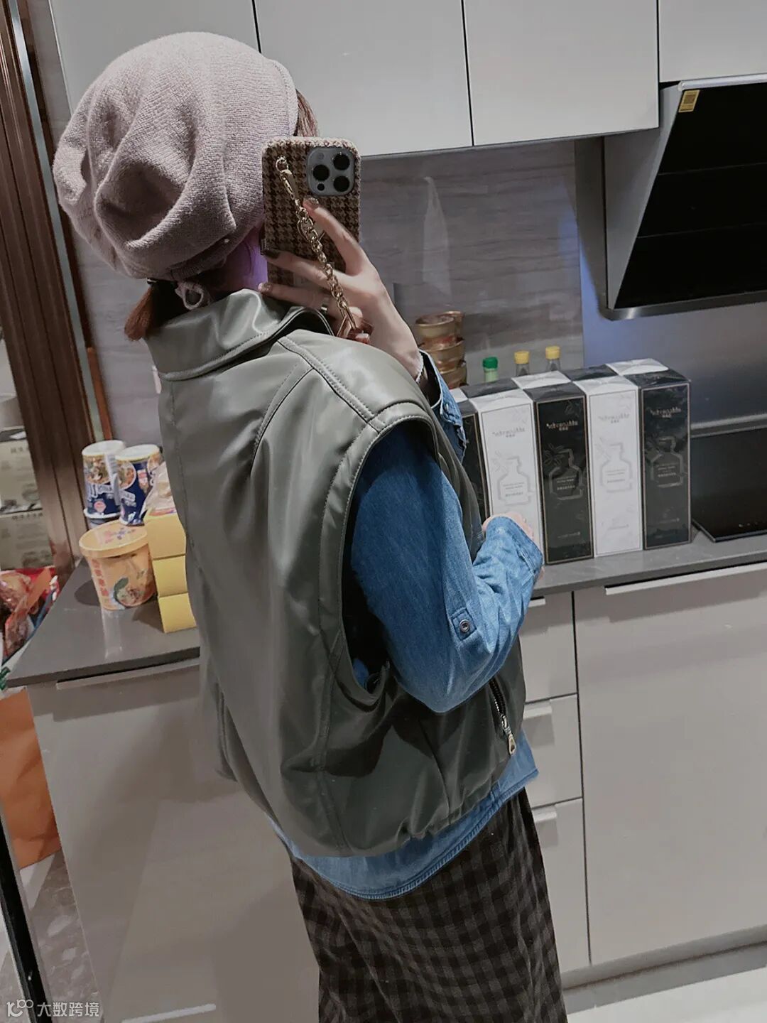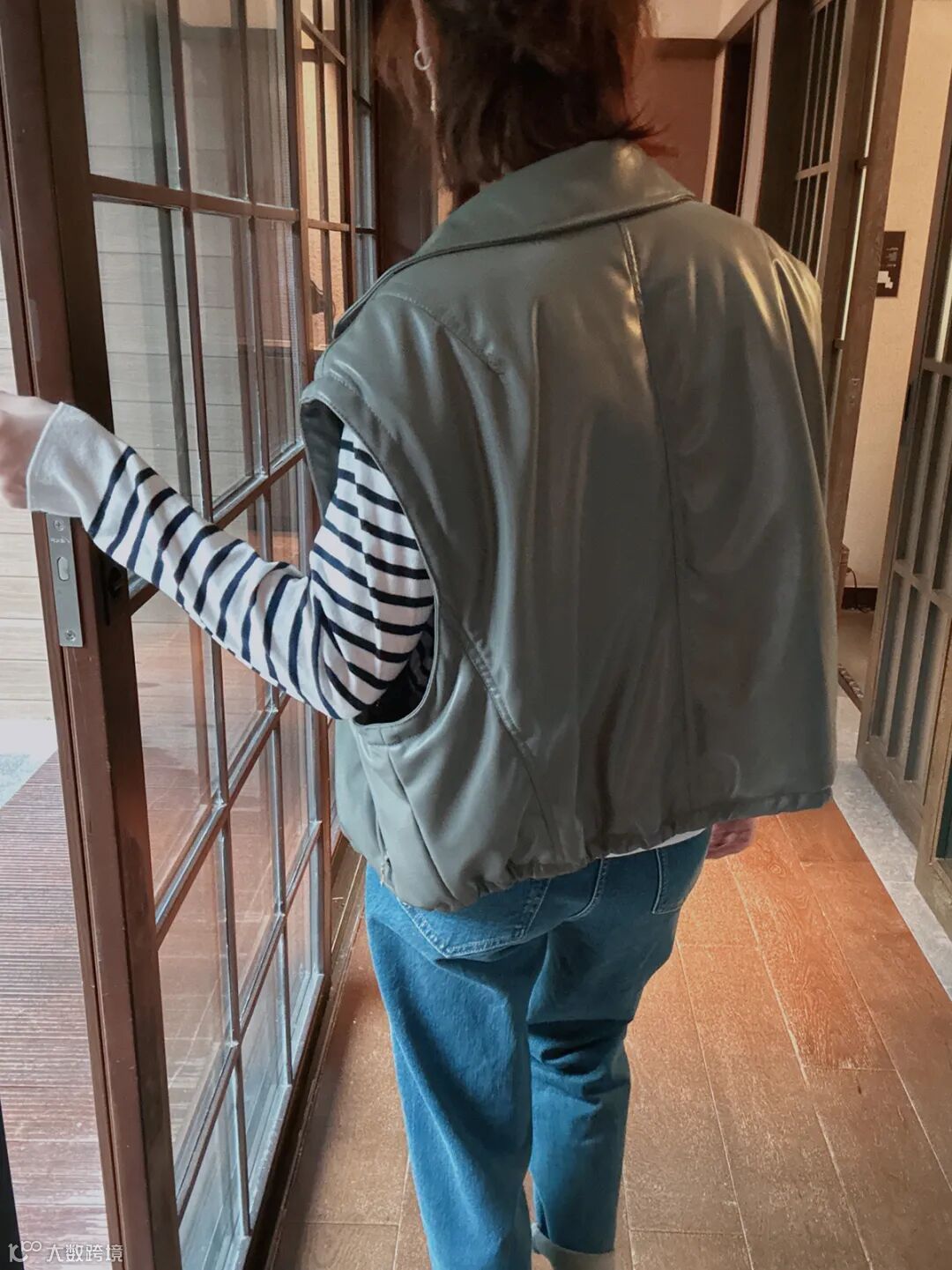 宽宽大大的箱型剪裁,上身秒变时髦精,挡不住的飒气。袖窿可脱卸拉链,拆掉就是一件pu棉面甲,一衣两穿,利用率贼高。内襟遮住拉链,既美观也能更舒适,即使工艺再复杂,也必须做到。下摆一圈弹力绳,本身就抽紧到一定的量,有些许花苞感,假如你还想内扣更多,通过卡扣调节即可。