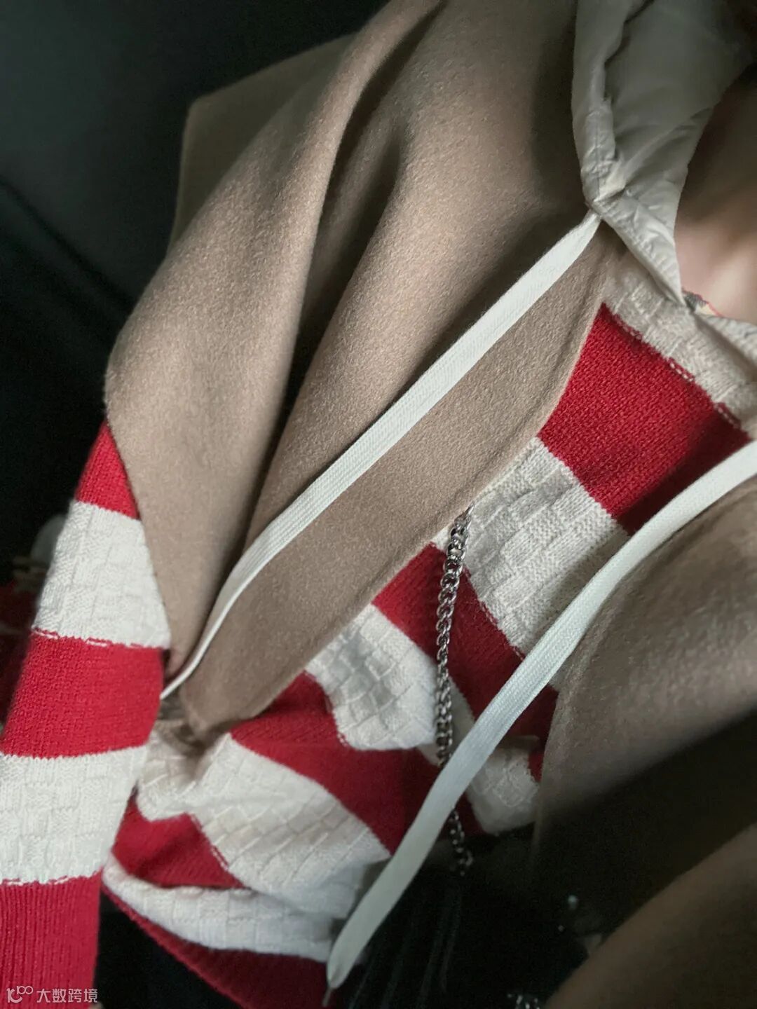 在所有基础色中,冬天最推荐红+白,又酷又浓烈。然而红色面积太大会挑人,减少红色占比是保证人人都能穿好看的关键。
