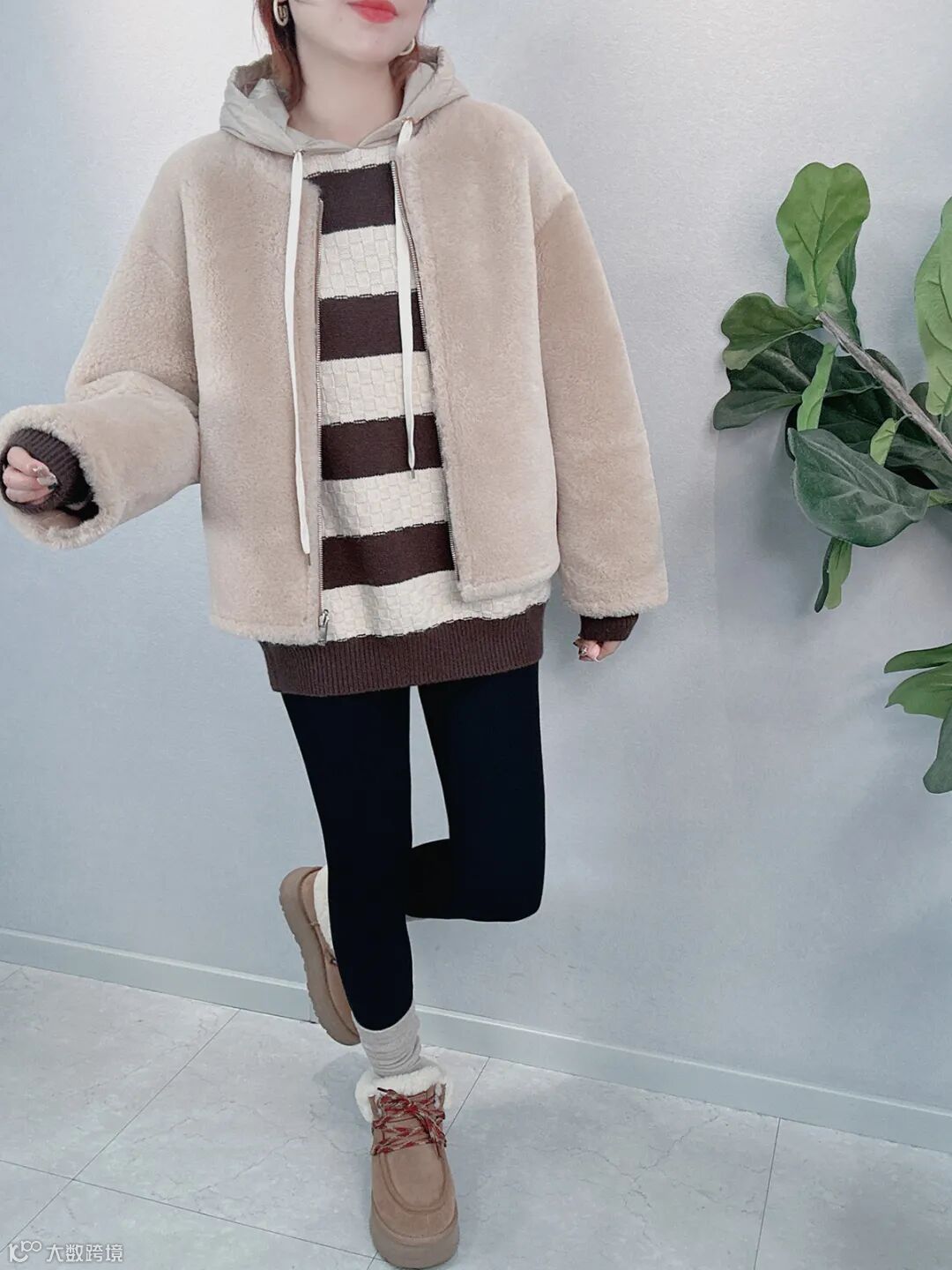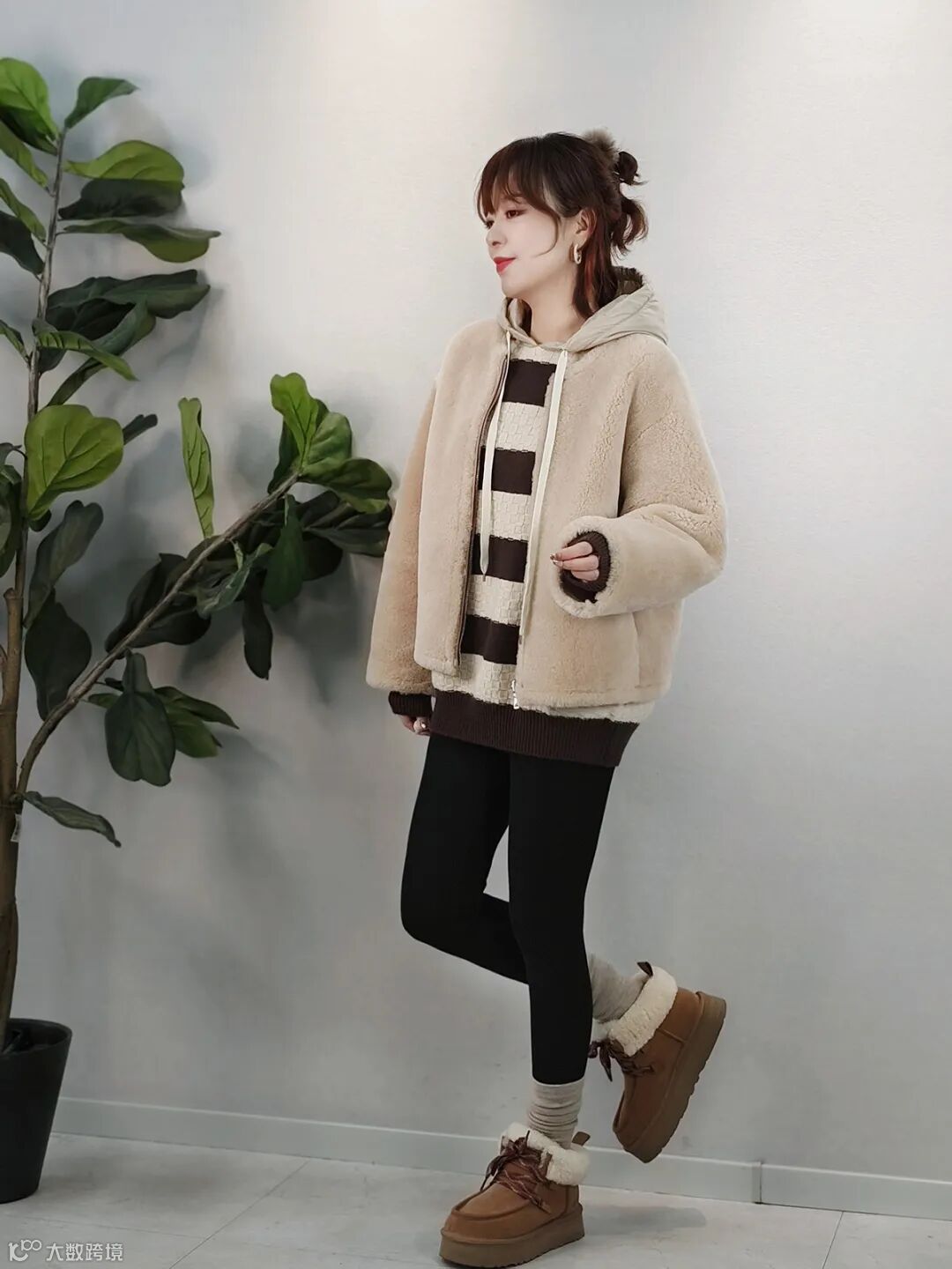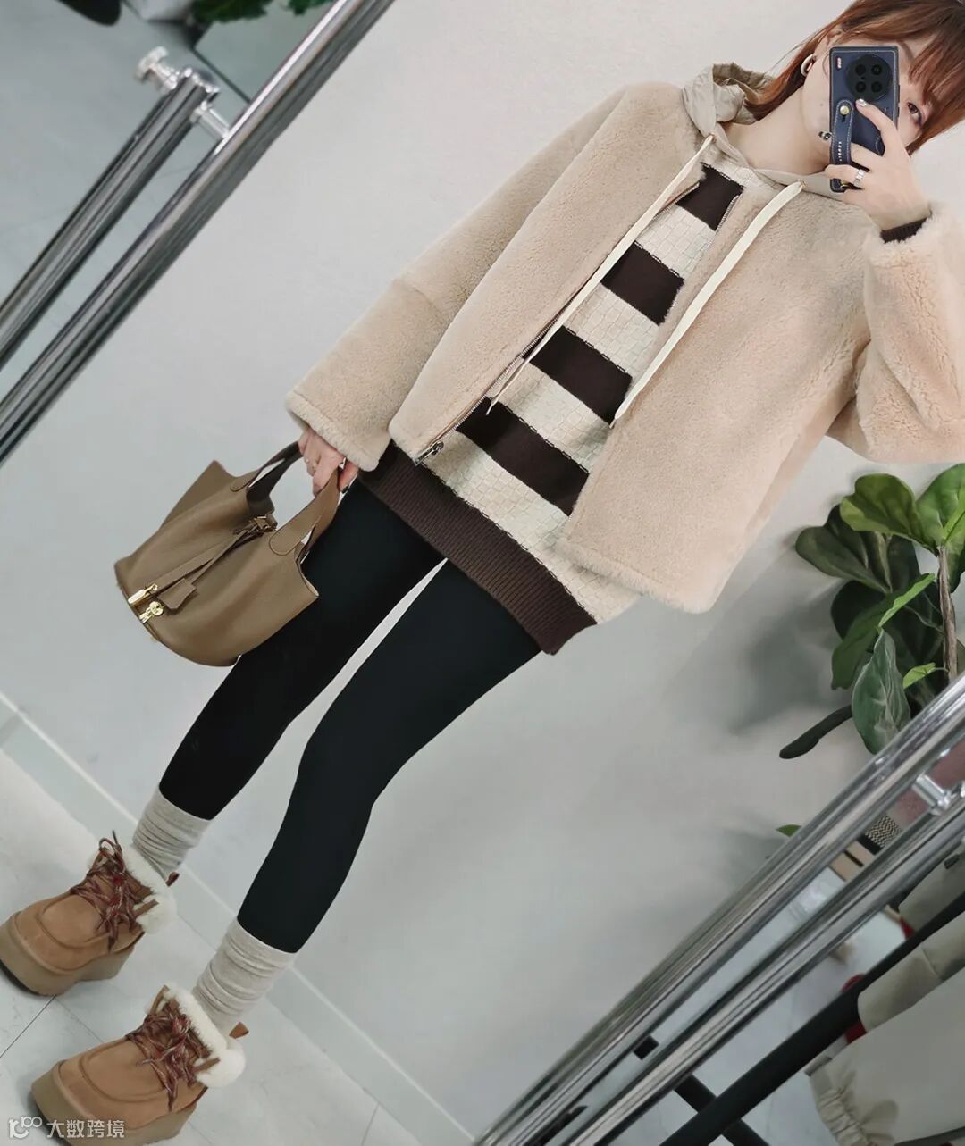 皮毛一体的外套可谓是既保暖防风又好看时尚。