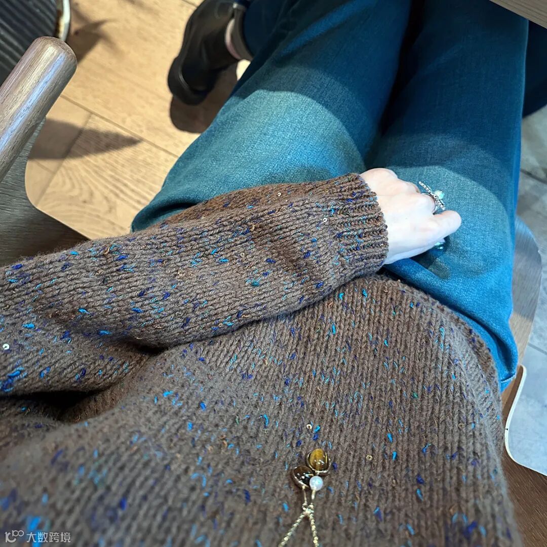 和常规点吐纱不一样的纺织方法,采用夹花与亮片的组合,突破沉闷,璀璨精致却不扎身,进口机的定纺工艺使得整个纱线的蓬松感比较镐,和本身自带复古气息的颜色非常搭,淳朴中带着低调的闪耀,一切都是恰到好处!
