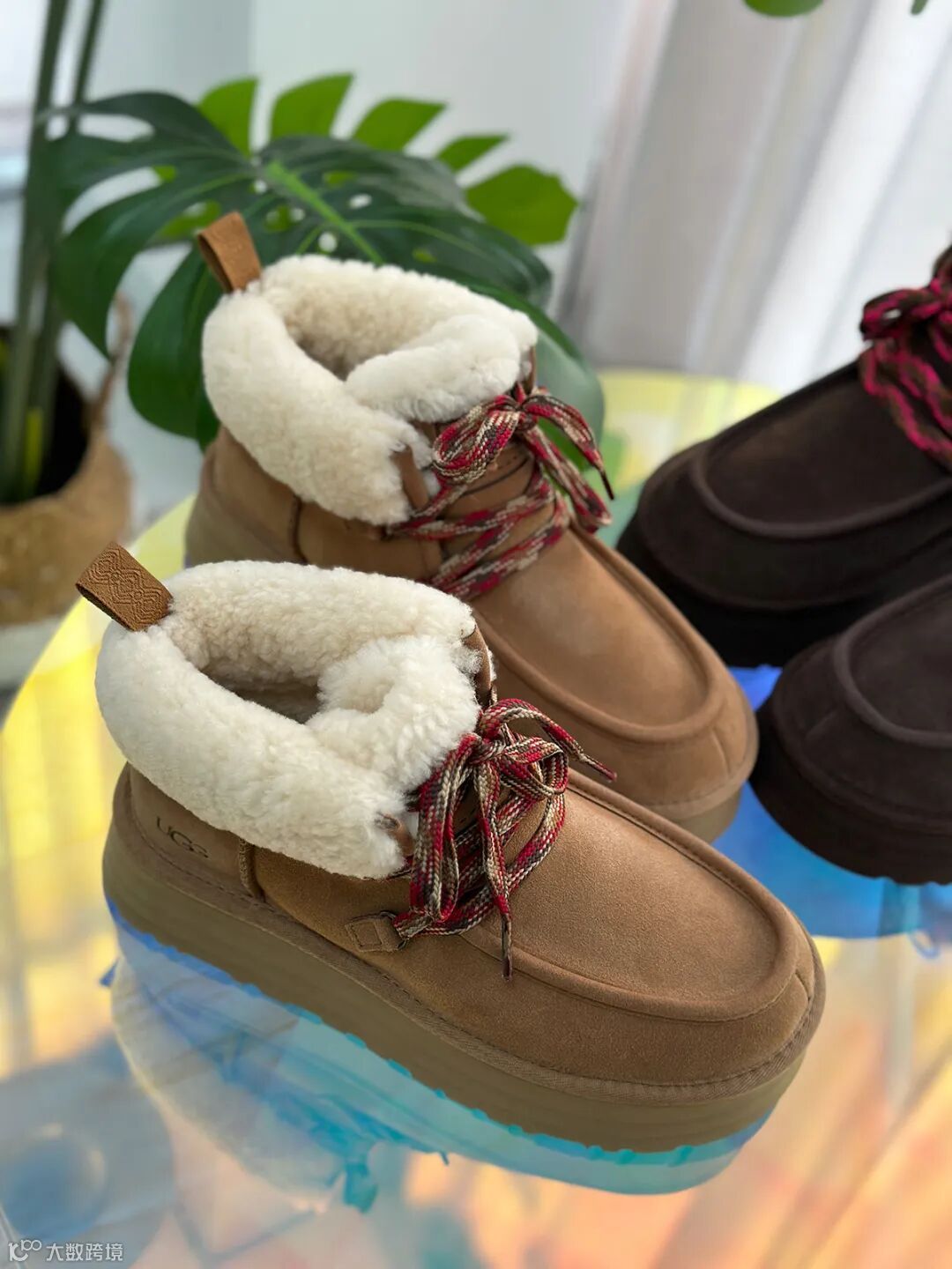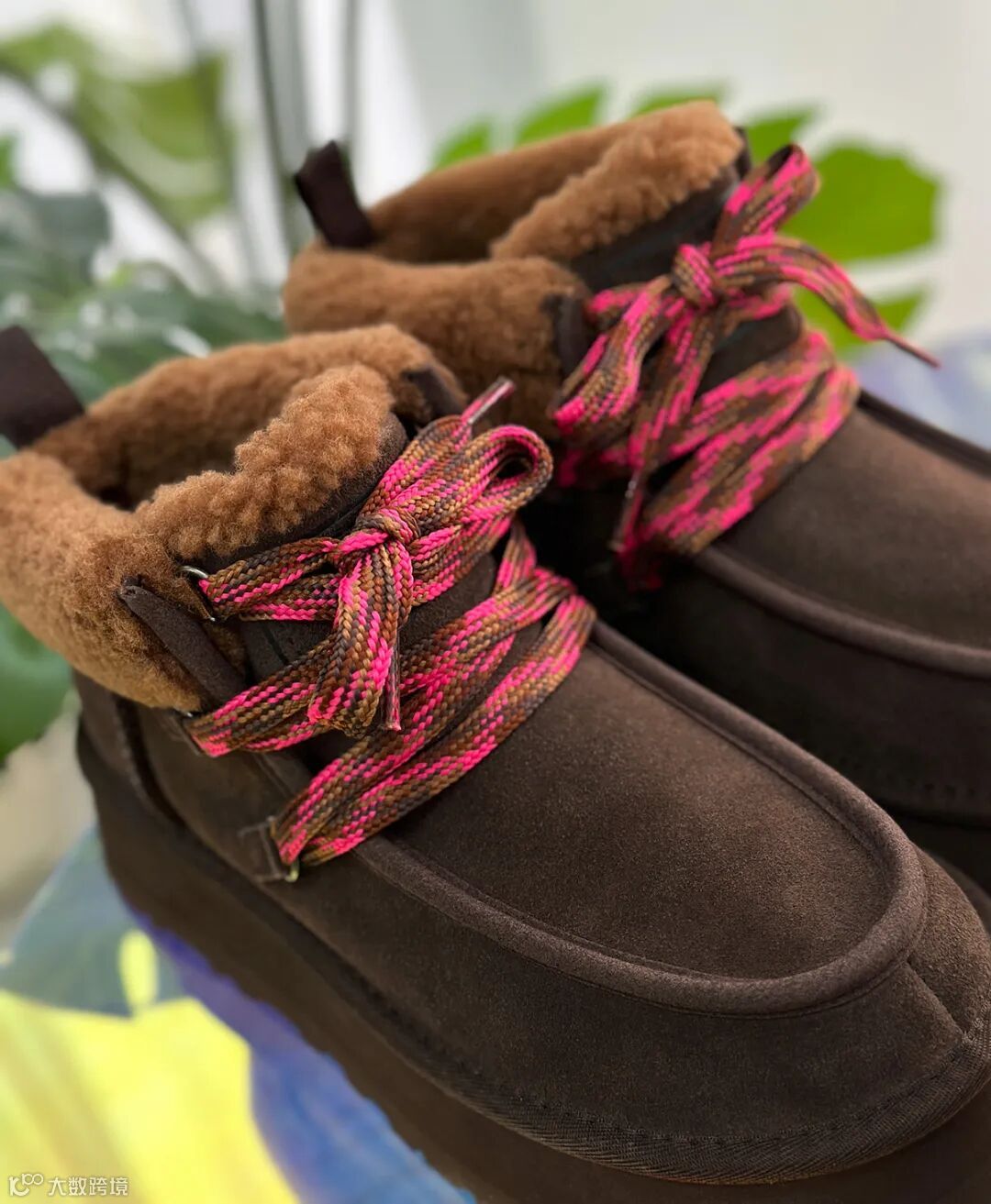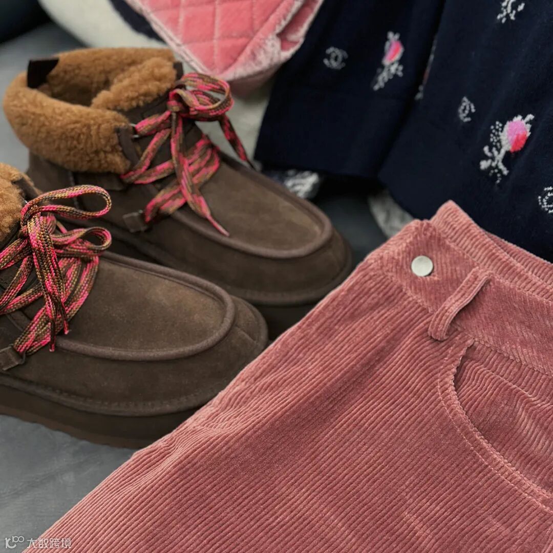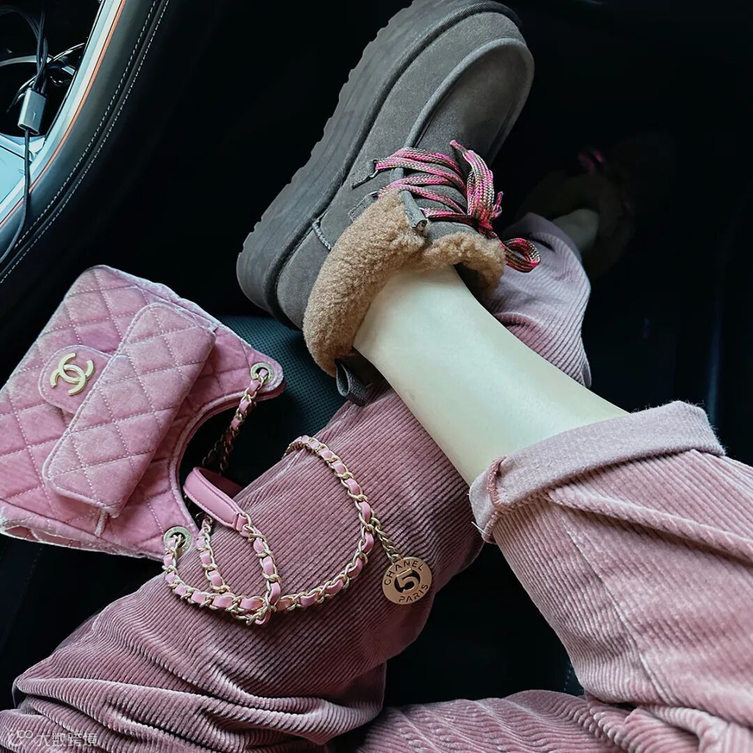 这双雪地靴的轮廓设计,一看就是为保暖而诞生的,系带穿出秋冬暖洋洋的氛围感,最重要的是雪地靴的内胆也超级绒,超级厚,让那些怕冷星人的女孩子可以穿搭的相当满意。