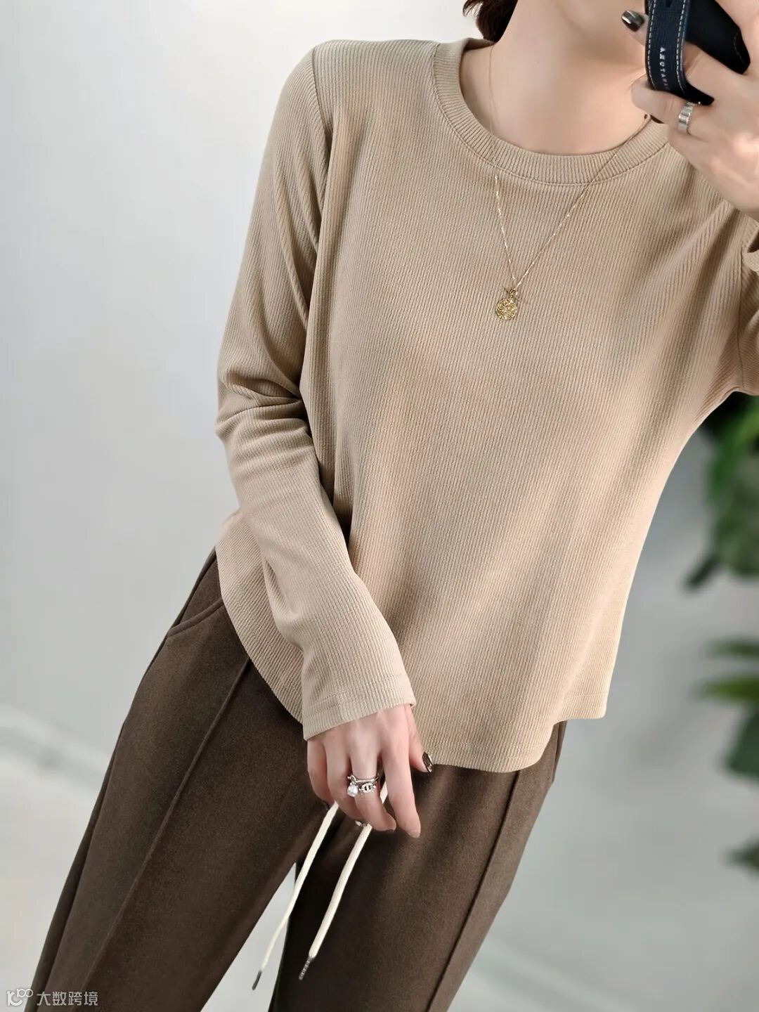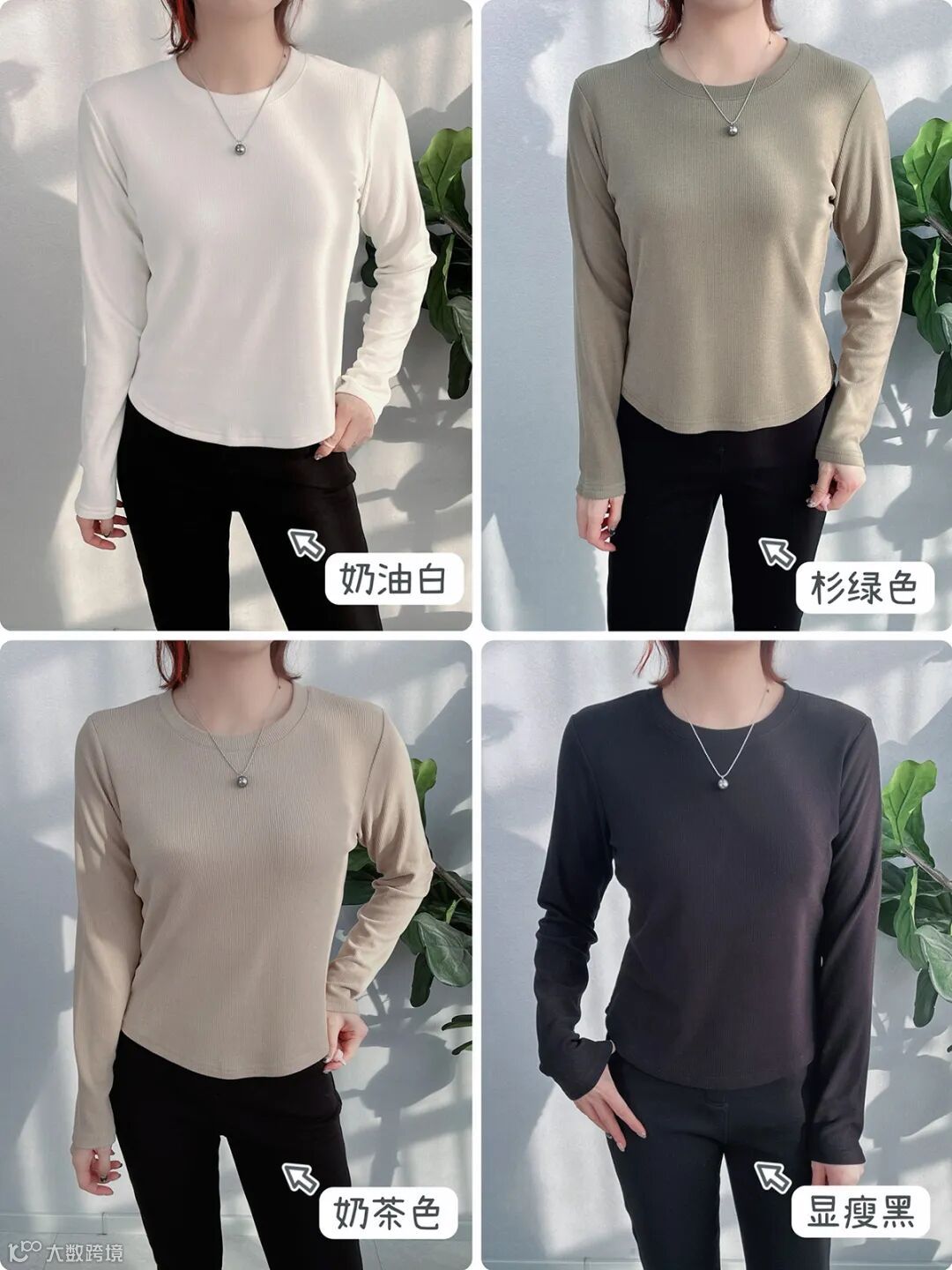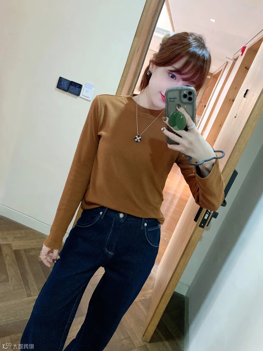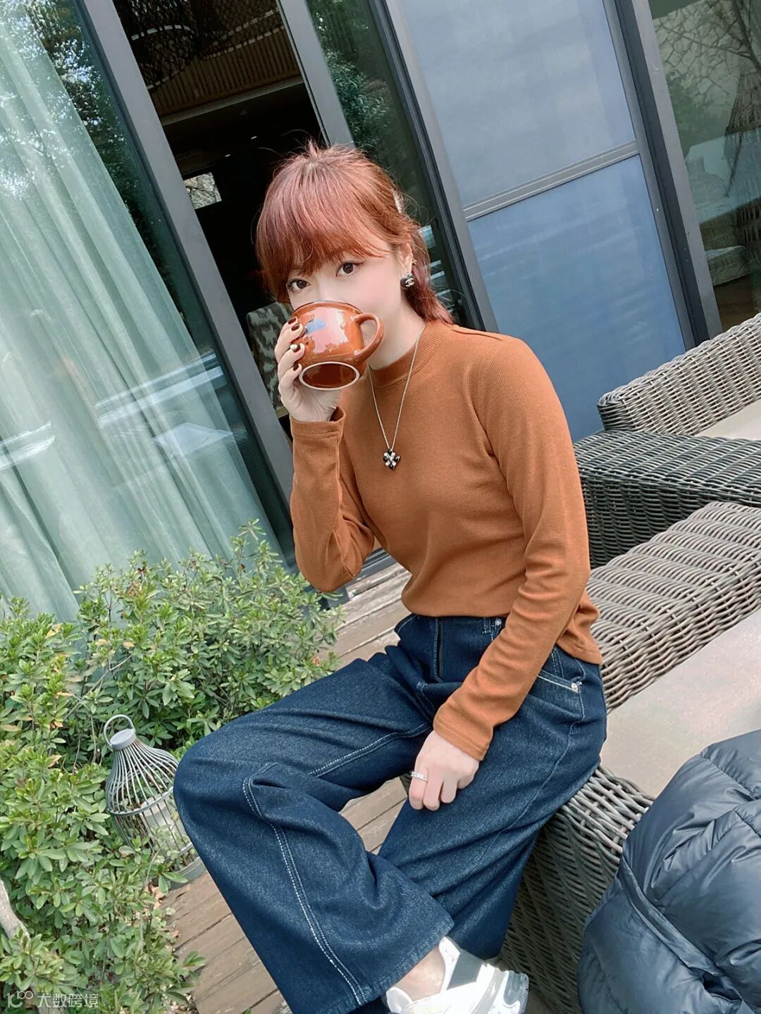 圆领一般比较少女感,减龄范,无论搭配裤子,细线的紧身的都有着很好的修饰身材的自我美好展现。