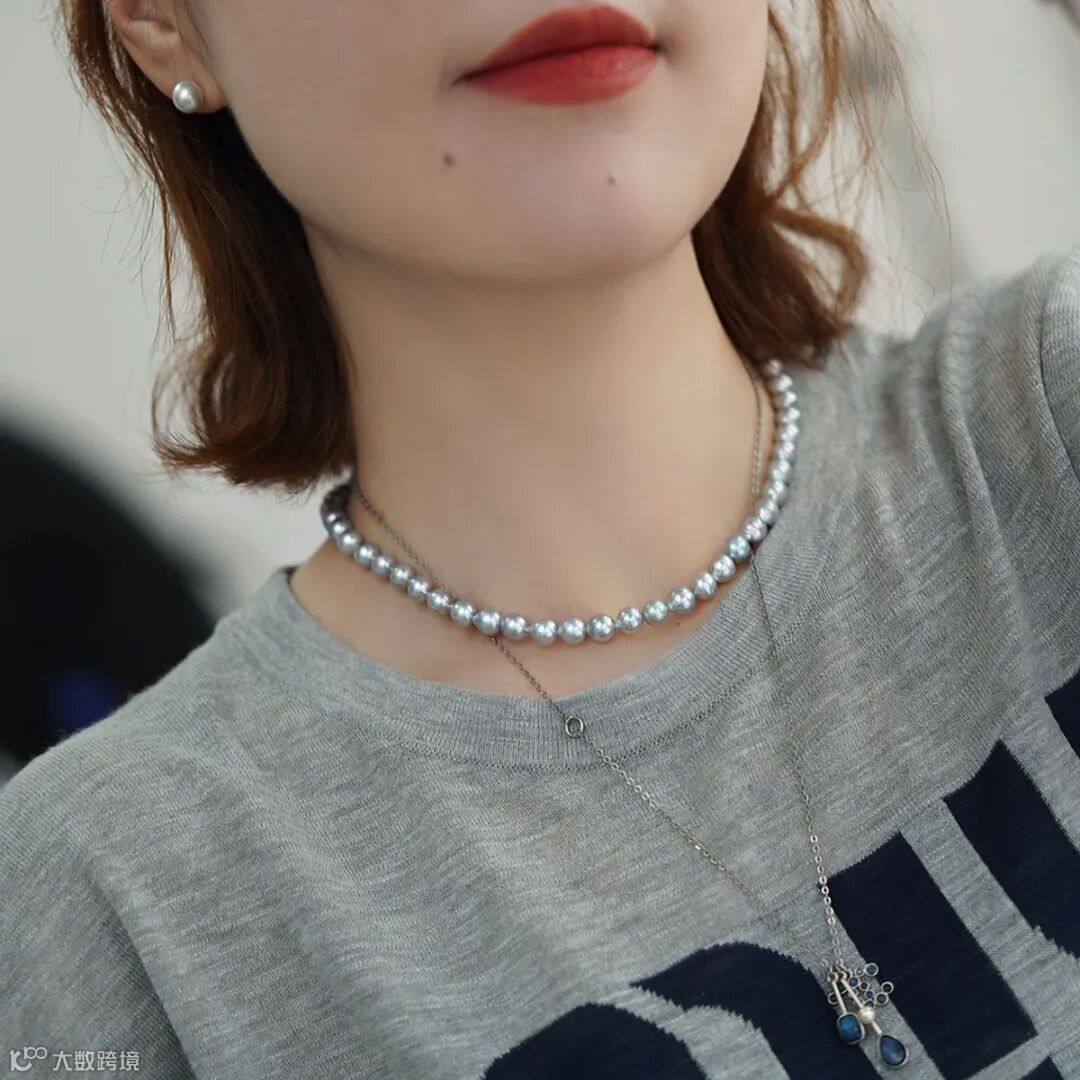 大溪地黑珍珠项链和硬朗、童趣、减龄、休闲类的衣服搭配,更日常、休闲时髦。