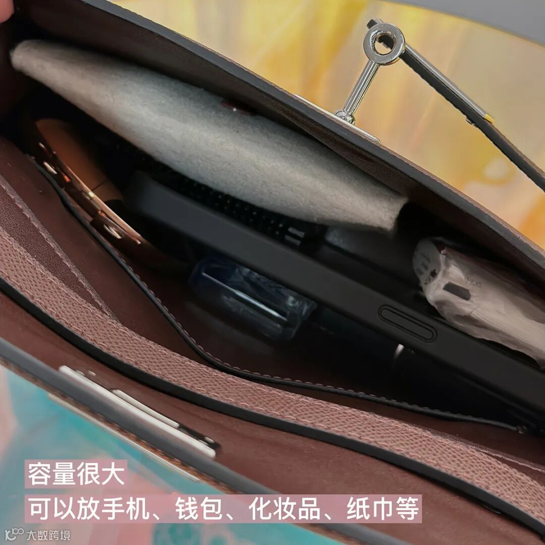 这款手袋的设计不仅注重美观,更注重实用性。不仅可以手提,还可以肩背,提供了多种携带方式,满足不同场合的需求。包的容量也很实用,足够装日常的东西了。
