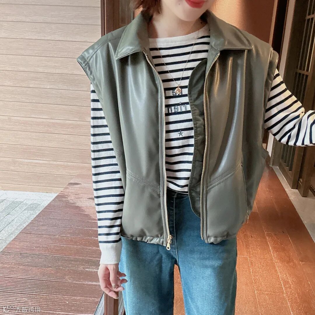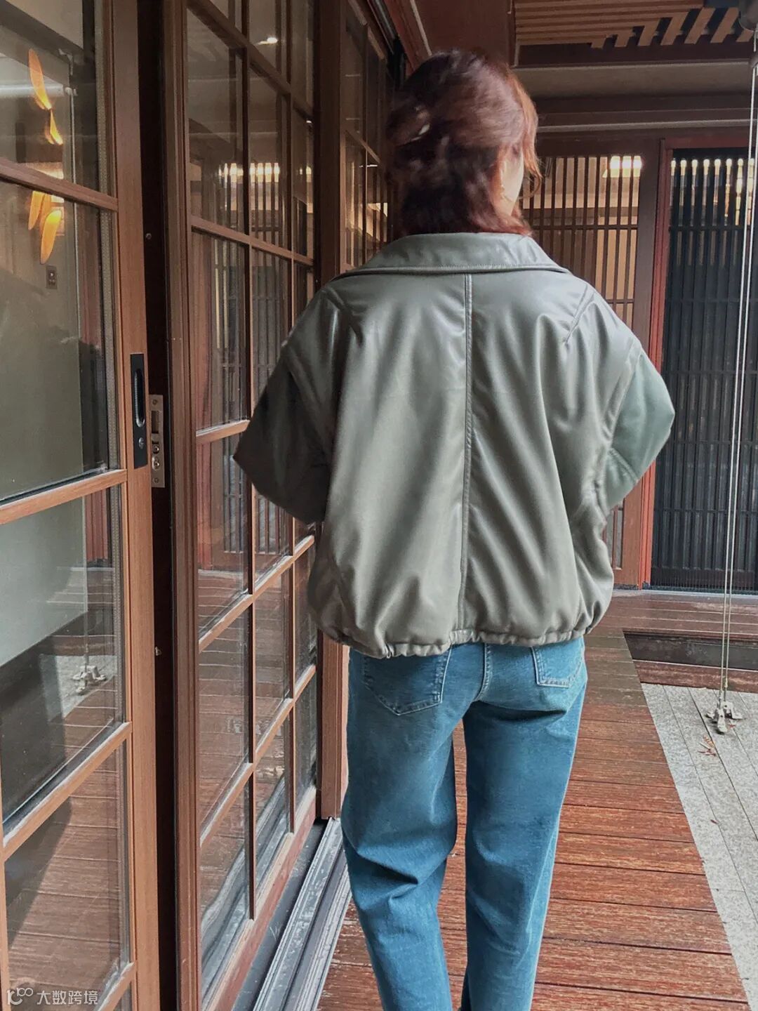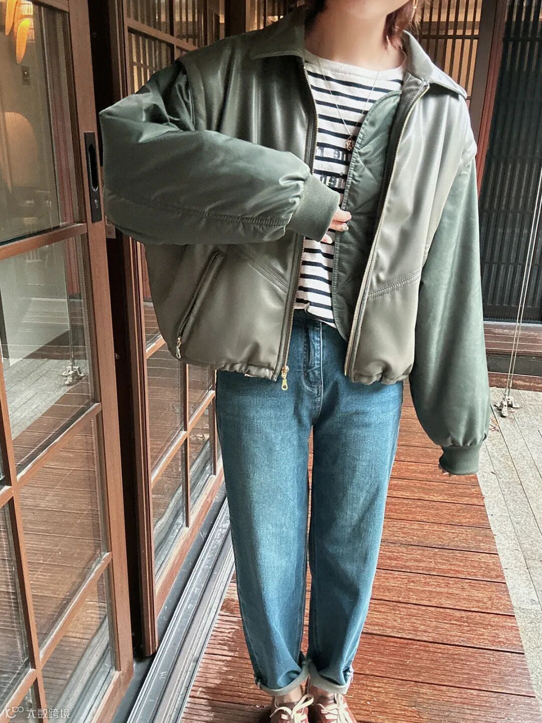 这款棉服的工装风比较淡,所以穿到身上之后,表现出来的温柔感胜过帅气感,宽松的版型很能遮肉,无论你是八九十斤的"瘦竹竿",还是一百五十斤的胖妹妹,穿上这件宽松的PU棉服之后,都能变得一样苗条迷人。