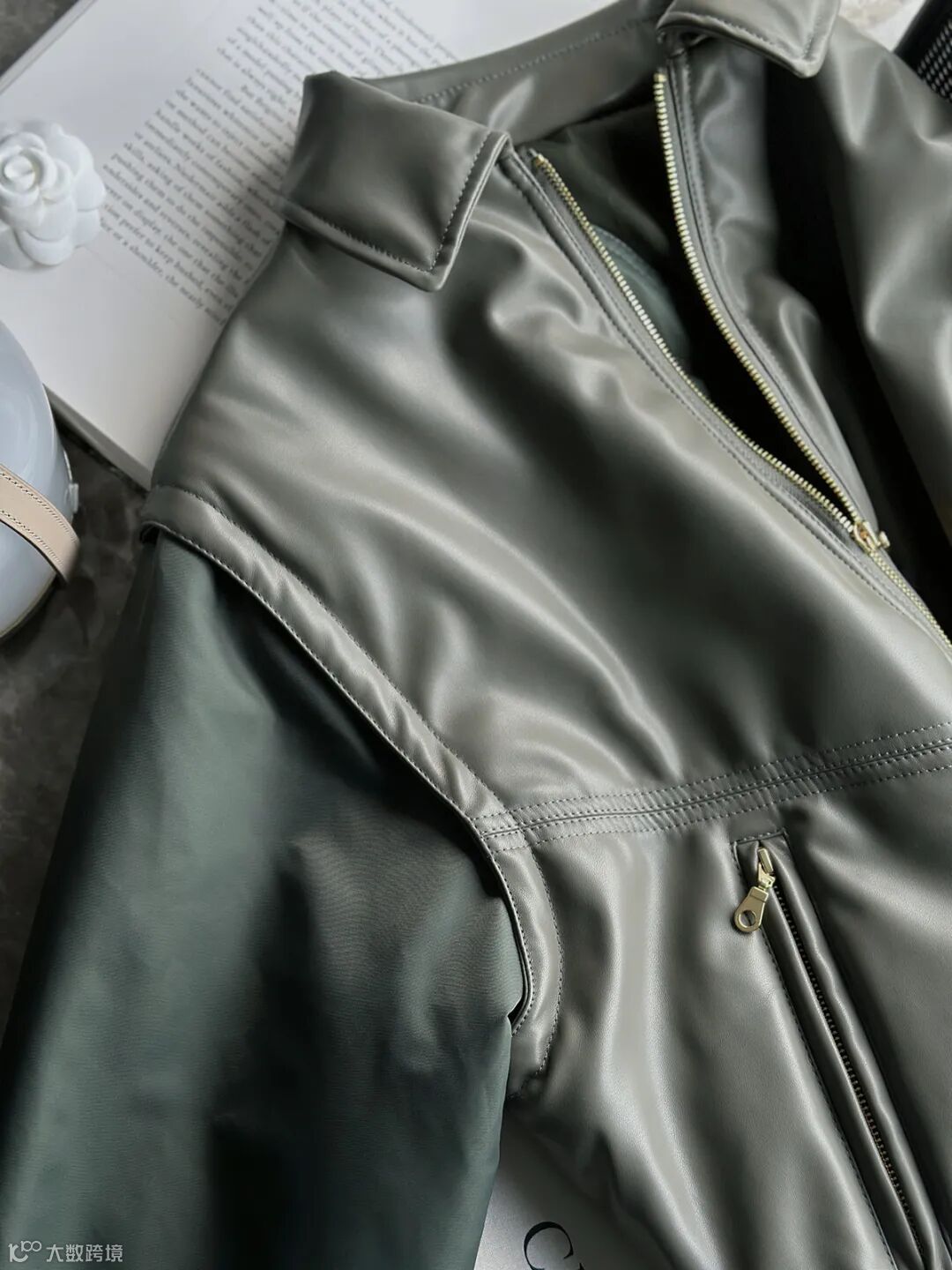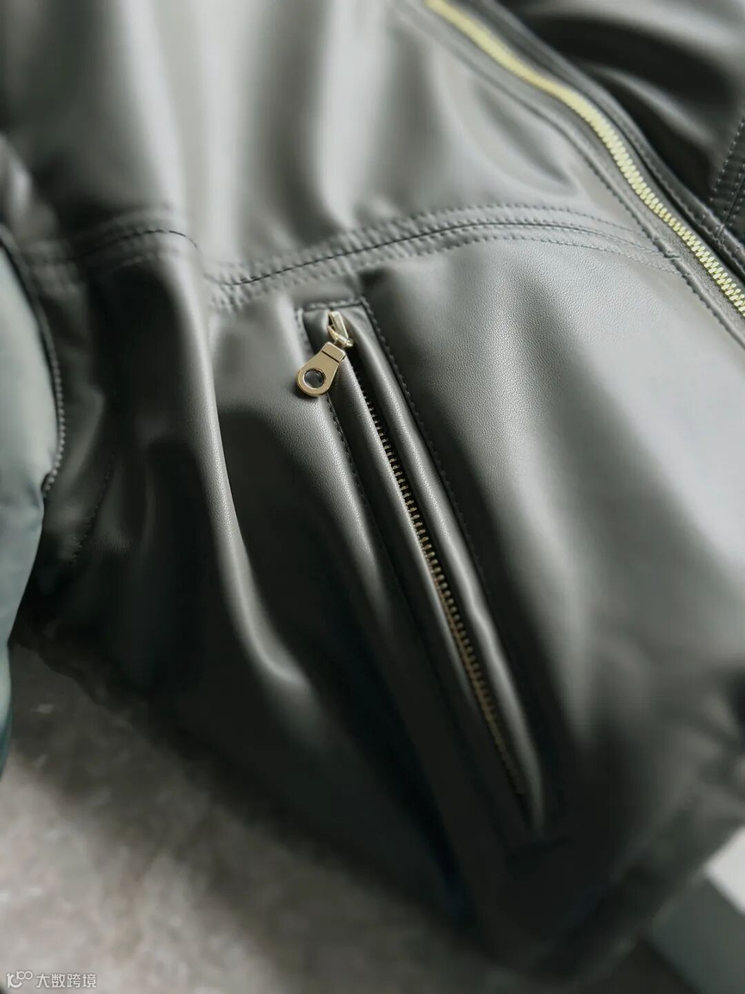门襟四合扣方便穿脱,门襟和袋口蛋白PU贴边,拥有真皮质感,非常高级。直身廓形,休闲连帽设计将帅气利落的态度坚持到底,宽松版型也对于内搭的选择没有那么挑剔。