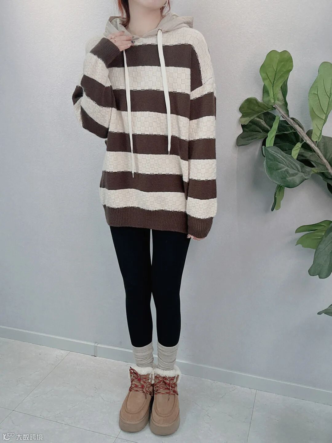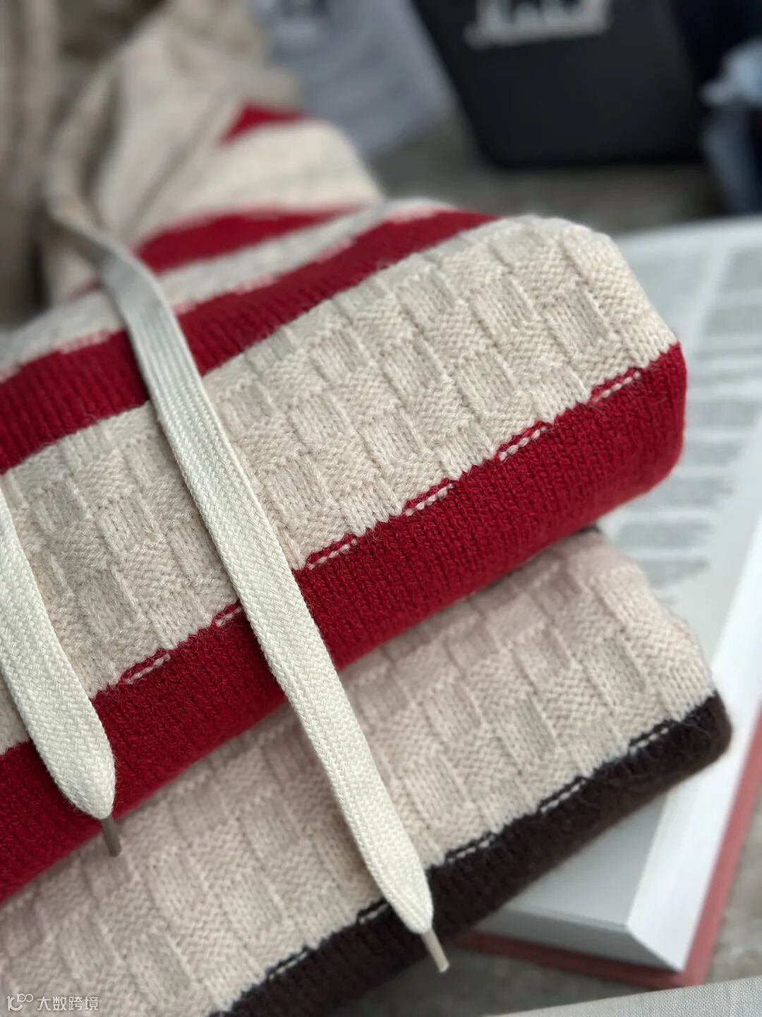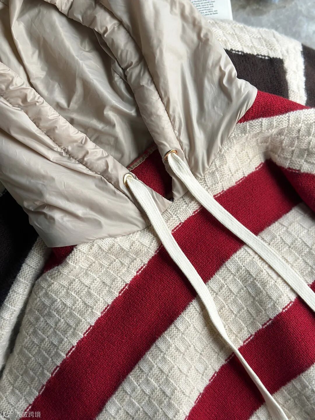 在秋冬搭配起来也是有着百搭的实用价值,无论搭配帽子夹棉的设计非常特别,比普通单层针织保暖,且不用担心会因为帽子太重卡脖子,衣身宽条撞色,配以棋盘格肌理压皱,与众不同的格调。