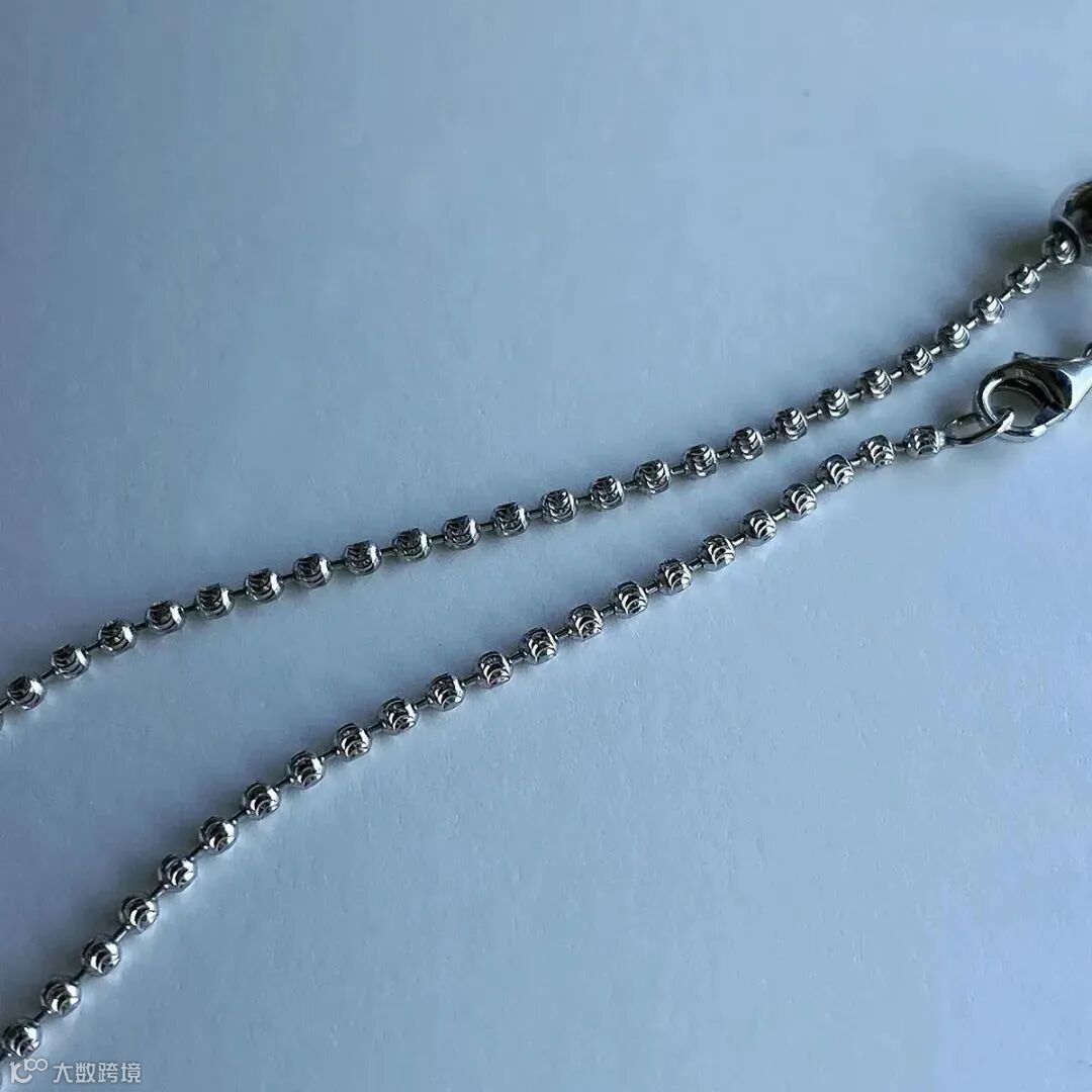 项链:18K金进口“钻石”链,金重约5.8克;链长50cm,移动小金球可自由调节长度。