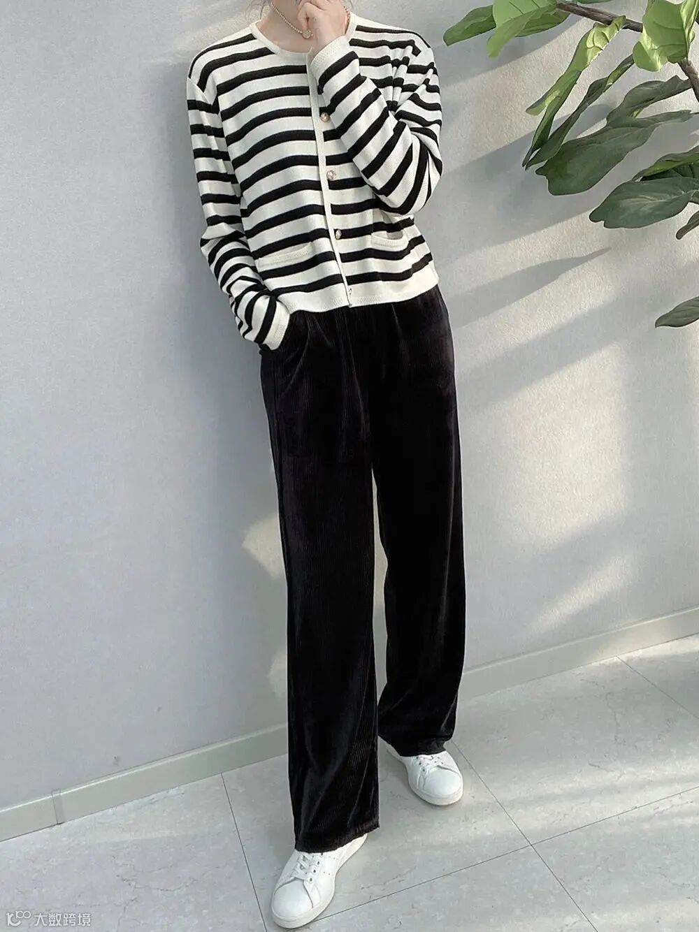 这条遮肉显瘦的条绒阔腿裤请你闭眼pick!