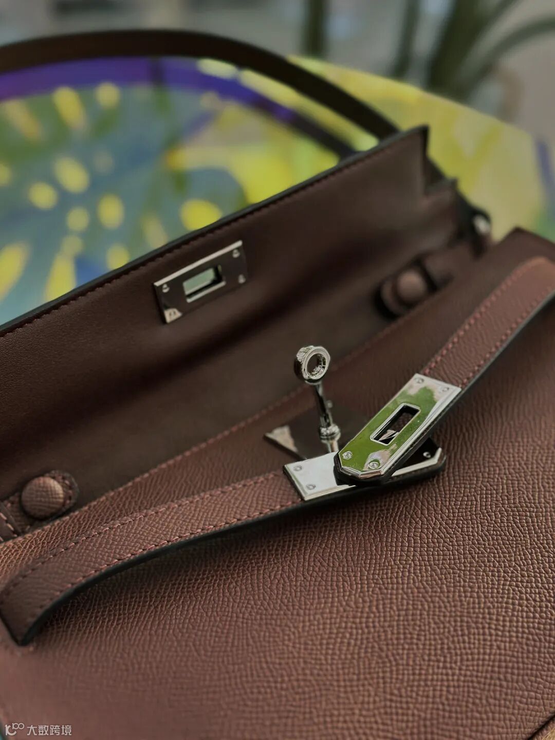 凯莉包的设计风格简约而不简单,金属扣的点缀让包包更加华丽,同时又保持细节简洁,让Kelly包成为经典风格的代表。
