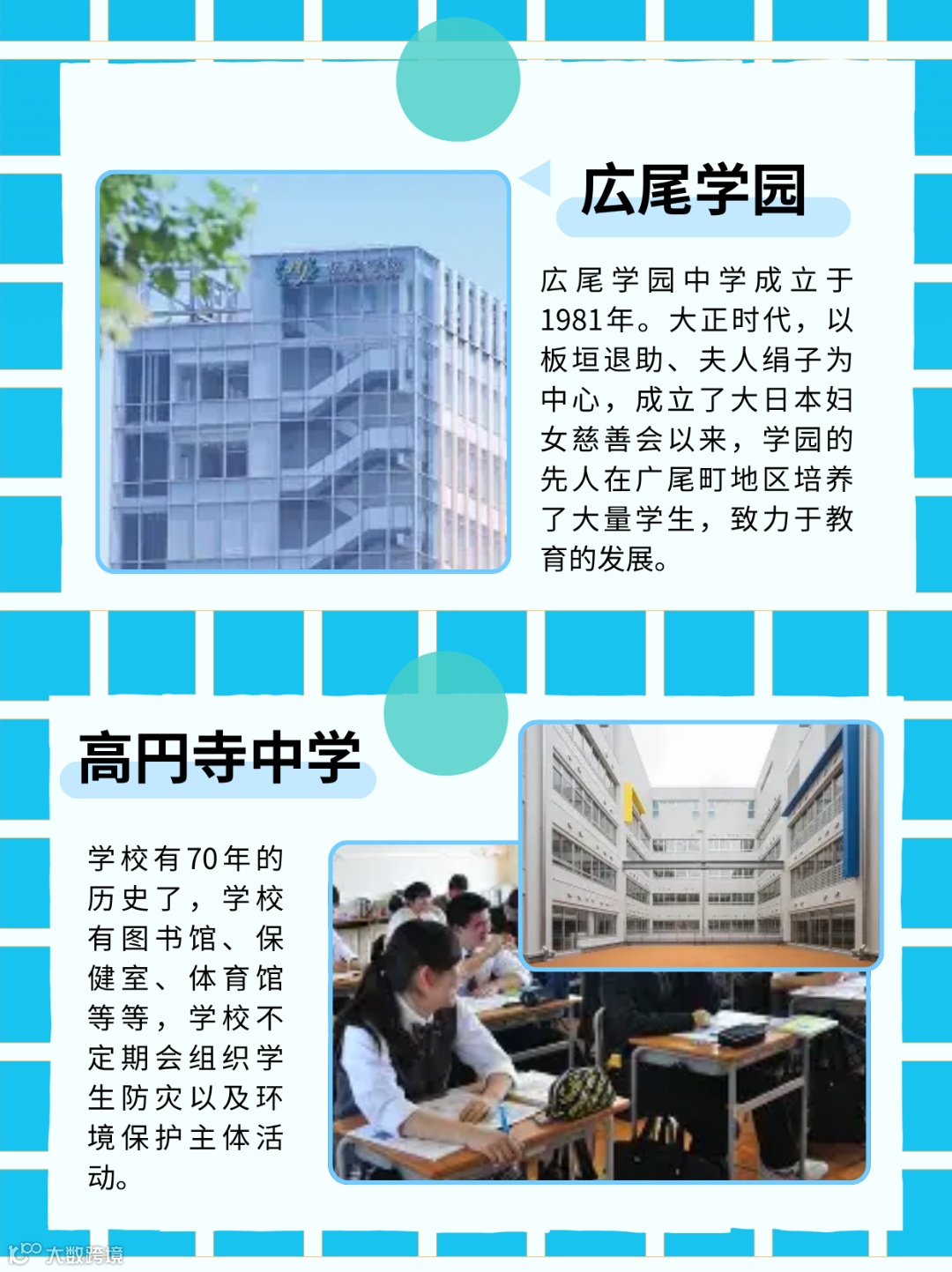 広尾学园中学成立于1981年。大正时代,以板垣退助、夫人绢子为中心,成立了大日本妇女慈善会以来,学园的先人在广尾町地区培养了大量学生,致力于教育的发展。