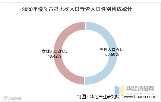 2020年,遵义市常住人口中男性占比50.58%,女性占比49.42%,性别比为102.36(以女性为100)[k]。