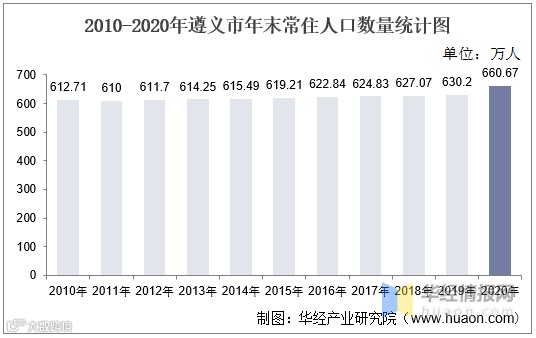 根据华经产业研究院整理数据,2020年遵义市年末常住人口为660.67万人,较2019年增加30.47万人,较2010年增长47.96万人[k]。