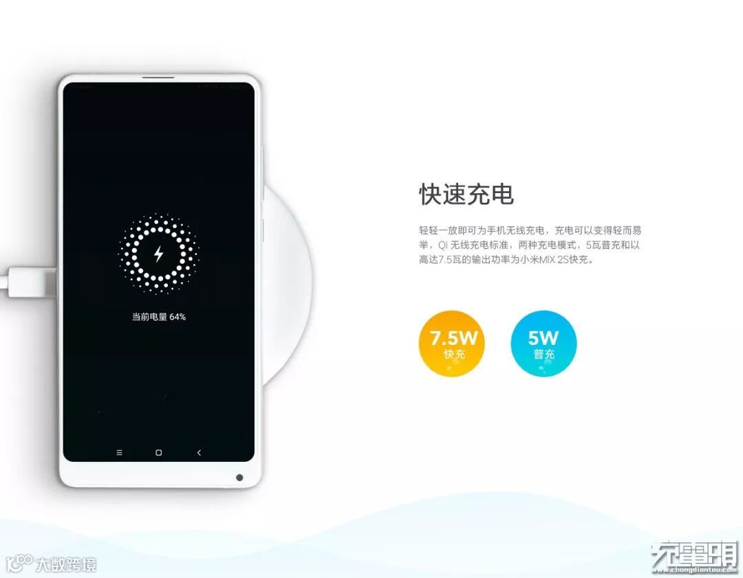 小米MIX 2S是首款骁龙845国产手机,也是首款支持无线充电的小米手机,搭载的是与苹果类似的7.5W无线充电。不仅如此,据可靠消息,随后发布的小米7、小米Max 3也将标配无线充电功能。