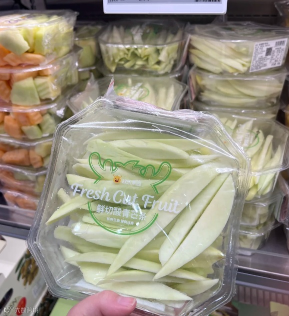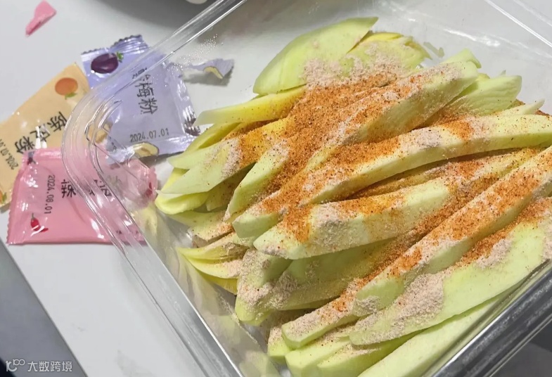 这款鲜切酸青芒条每盒500克,选用大果鲜切,条状均匀便于食用。附赠辣椒面、酸梅粉和陈皮粉,可根据喜好调配。个人偏爱酸梅粉,它能中和青芒的酸涩,带来酸甜平衡的清爽口感,腌制后更显风味。