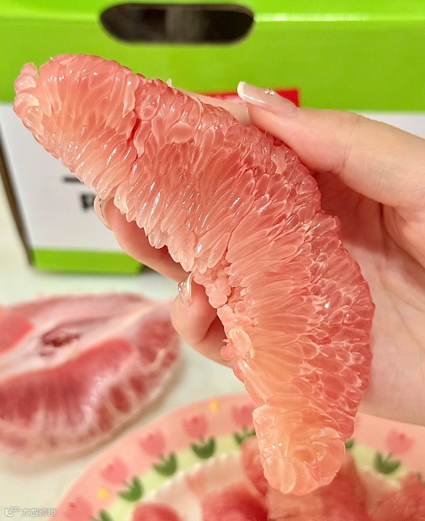 来自福建漳州平和的三红蜜柚,每箱大约五个,每个都圆润饱满,拿在手里分量十足。果皮容易剥离,露出润泽的红色果肉,一看就新鲜诱人。一口咬下,汁液丰富,酸甜适中,带着自然的果香,完全没有苦涩感。果粒饱满多汁,清甜滋味让人回味无穷。