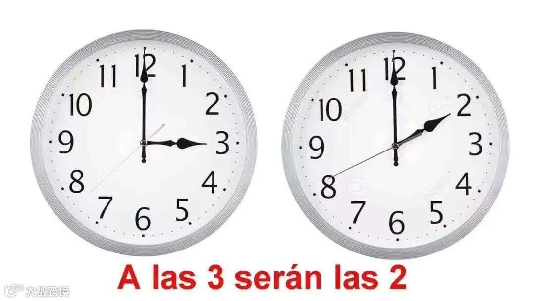 今年西班牙冬令时与往常日期相近,于2025年10月26日清晨(西班牙时间的本周六晚)开启,此刻之后,西班牙时间将从夏令时转至冬令时,这象征着中国与西班牙时差将由6小时变为7小时。