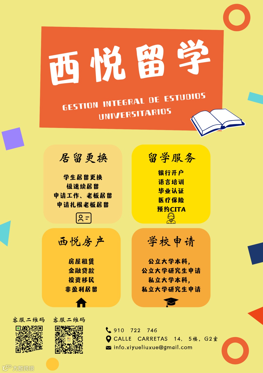 更多房屋贷款、马德里居留办理、Cita预约、优质租房、大学申请、语言学校报名及保险购买等需求,