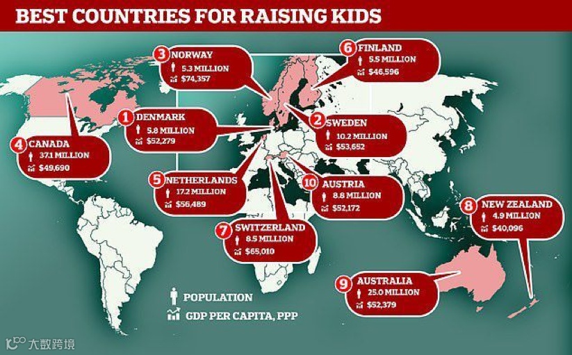 这个“最佳适合养孩子的国家”由US News & World Report、BAV Group和宾夕法尼亚大学沃顿商学院联合发布。