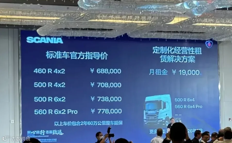 最后,中国市场的价格表也颇具看点。需要说明的是,中国商用车市场的习惯与欧洲不同,卡车制造商会公开展示产品价格表。因此,在10月15日的市场发布会上,斯堪尼亚正式公布了上述第一系列(即欧洲市场已熟知的全球通用车型)的基准价格:其中,中国工厂生产的斯堪尼亚460R 4×2 Super在当地市场的售价为68.8万元人民币;斯堪尼亚500R 4×2 Super的售价为70.8万元人民币。