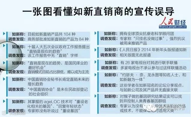 2014年,《人民日报》接连发长文批评《看“如新”怎样编织谎言》、《再揭“如新”骗局:涉嫌传销丶洗脑》。