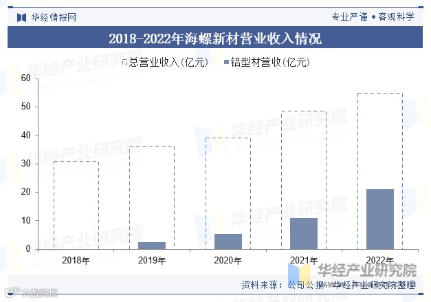 海螺(安徽)节能环保新材料股份有限公司为国家级高新技术企业,拥有国家级技术研发中心及重点实验室。2022年,公司推进多个铝型材项目,包括成都海螺2万吨铝型材技改项目、海螺嵩基光伏边框及支架铝型材项目、山东海螺2万吨技改项目,产品覆盖高端节能门窗、光伏边框与支架等新能源配套材料。当年公司总营收54.88亿元,其中铝型材业务收入21.04亿元,占总收入38.35%[k]。
